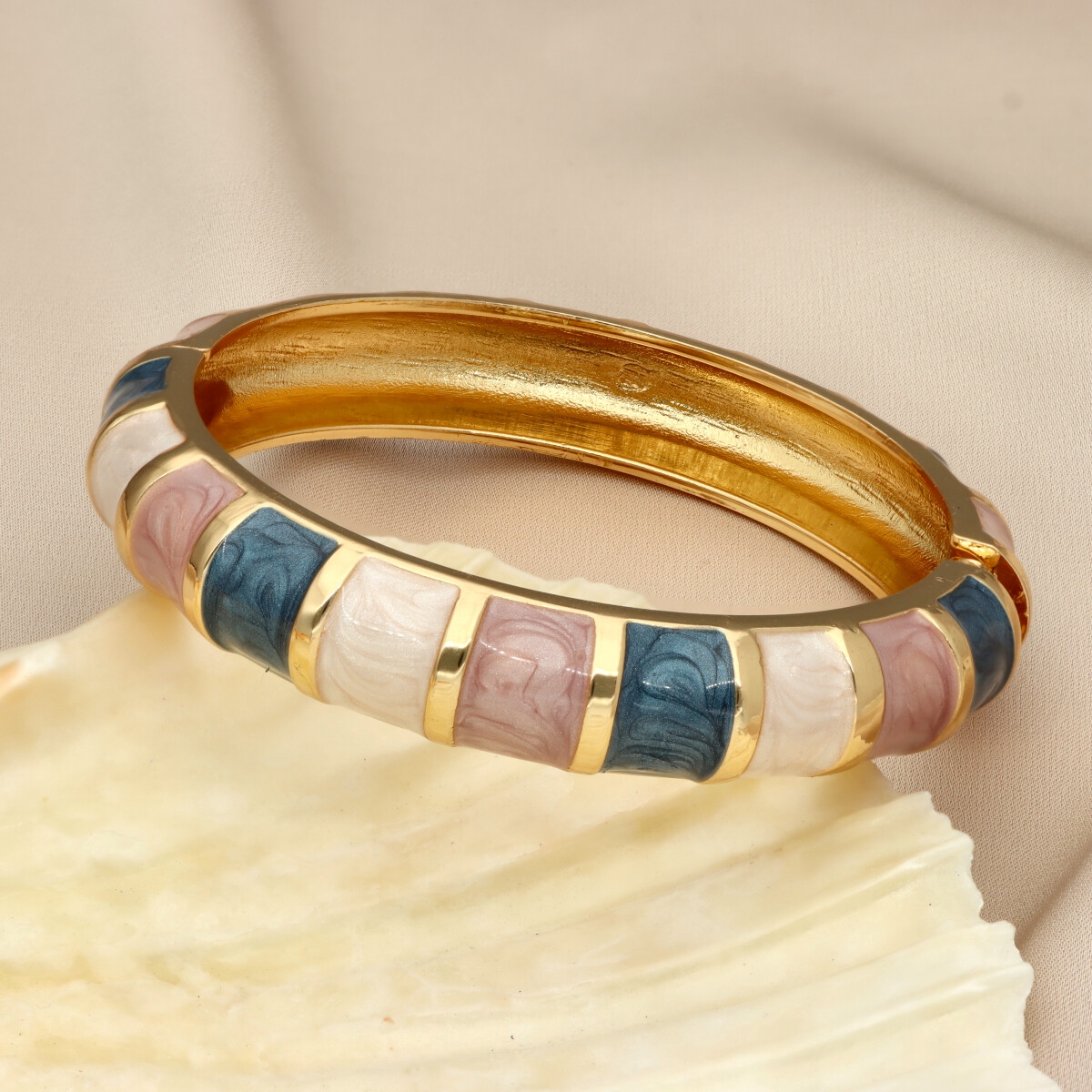 Stylowa bransoletka marki YVON to połączenie nowoczesnego designu z ponadczasową elegancją. Wyróżnia się geometrycznym wzorem z kolorową emalią, która nadaje jej charakteru i sprawia, że każda stylizacja zyskuje modowy akcent.
