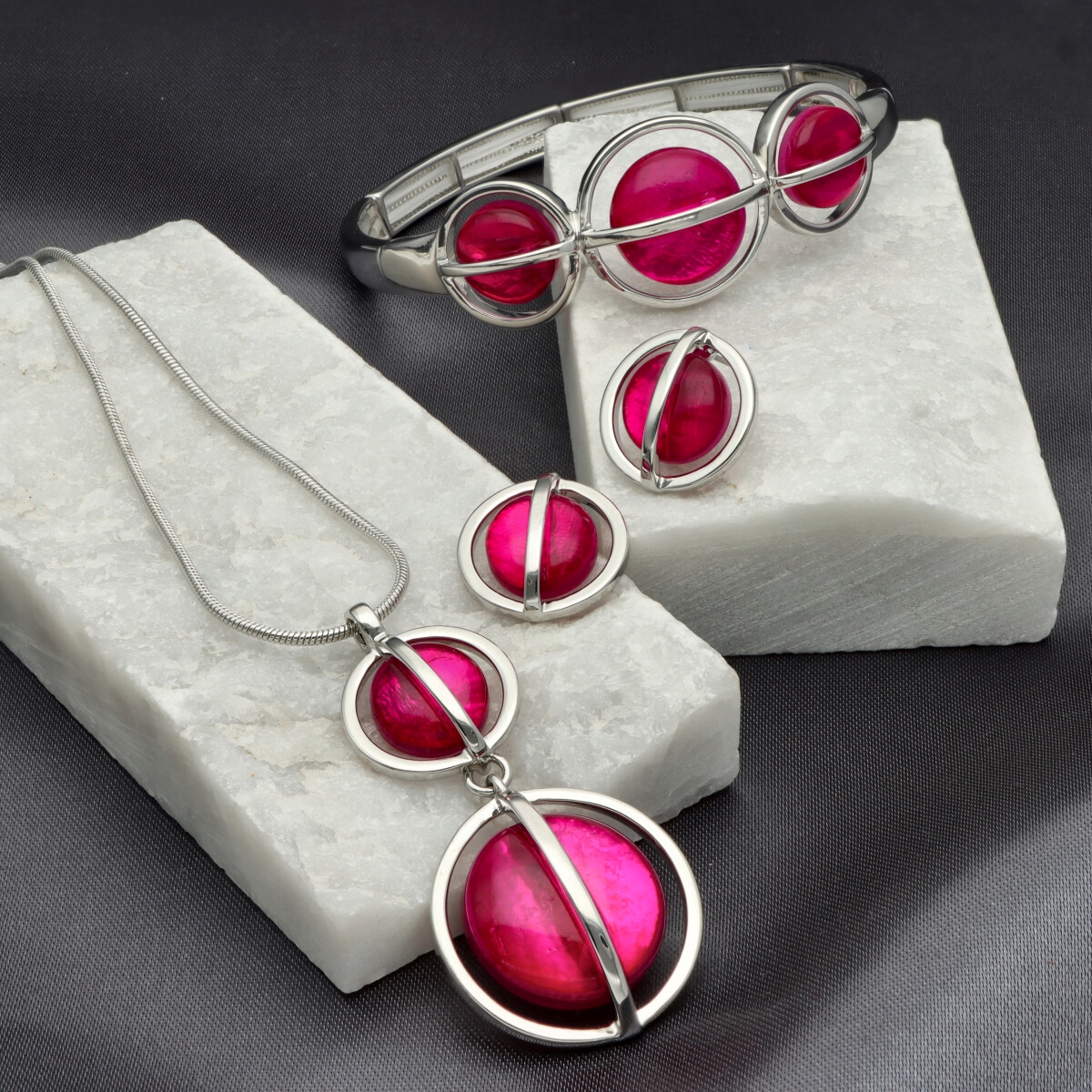 Elegancka bransoletka wykonana z metalu i żywicy jubilerskiej z efektem głębi. Rozmiar uniwersalny (na rozciągliwych gumkach). Szukaj do kompletu naszyjnika i kolczyków o tym samym indeksie numerycznym.
