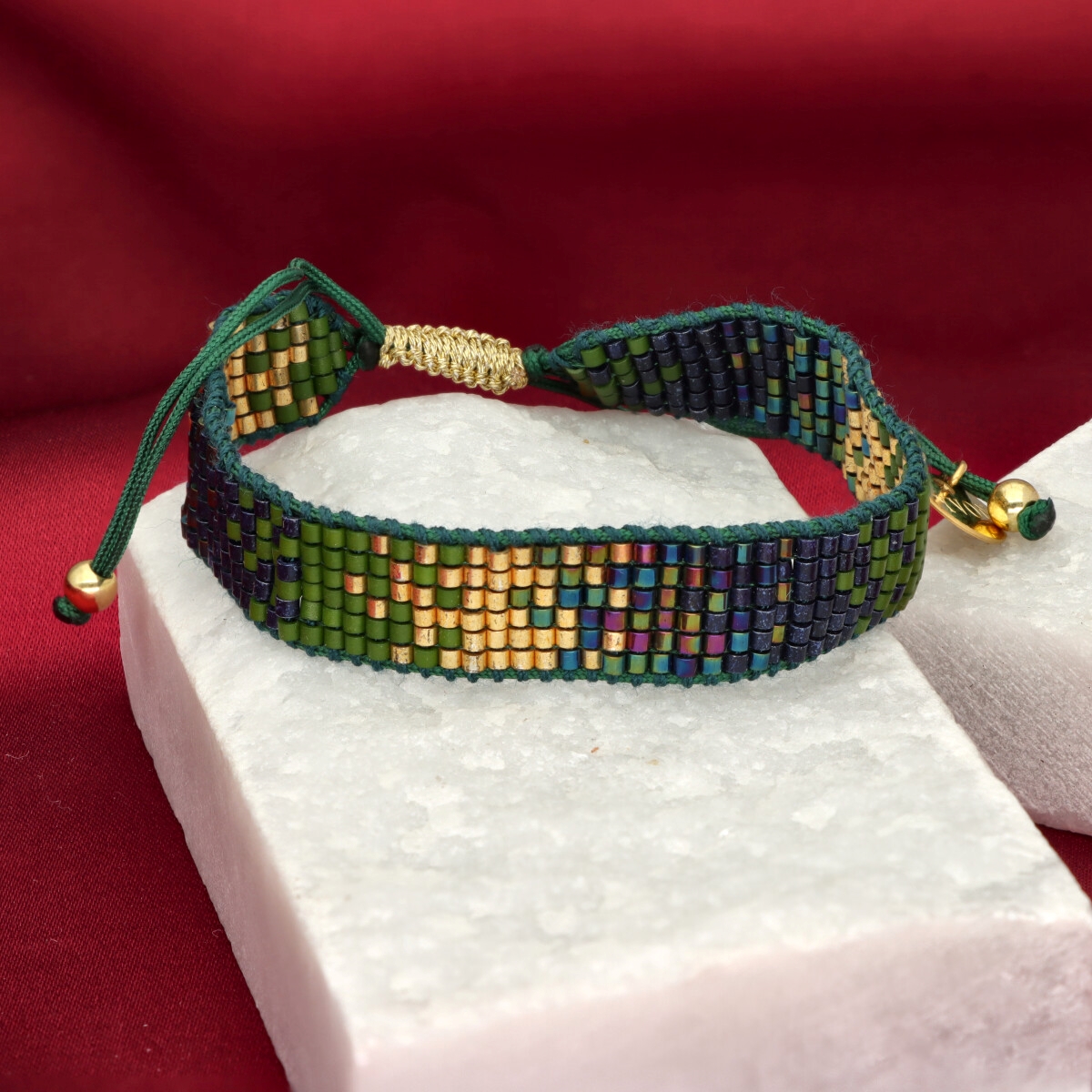 Bransoletka wykonana z oryginalnych japońskich koralików Miyuki – cenionych na całym świecie za niezwykłą precyzję wykonania i trwałość. Delikatny, ręcznie pleciony wzór nadaje jej wyjątkowego charakteru, łącząc rzemieślniczą jakość z nowoczesnym stylem. Regulowane zapięcie zapewnia idealne dopasowanie do nadgarstka, a eleganckie pudełko YVON Exclusive sprawia, że bransoletka doskonale sprawdzi się również jako prezent dla osoby ceniącej wyjątkowe dodatki.