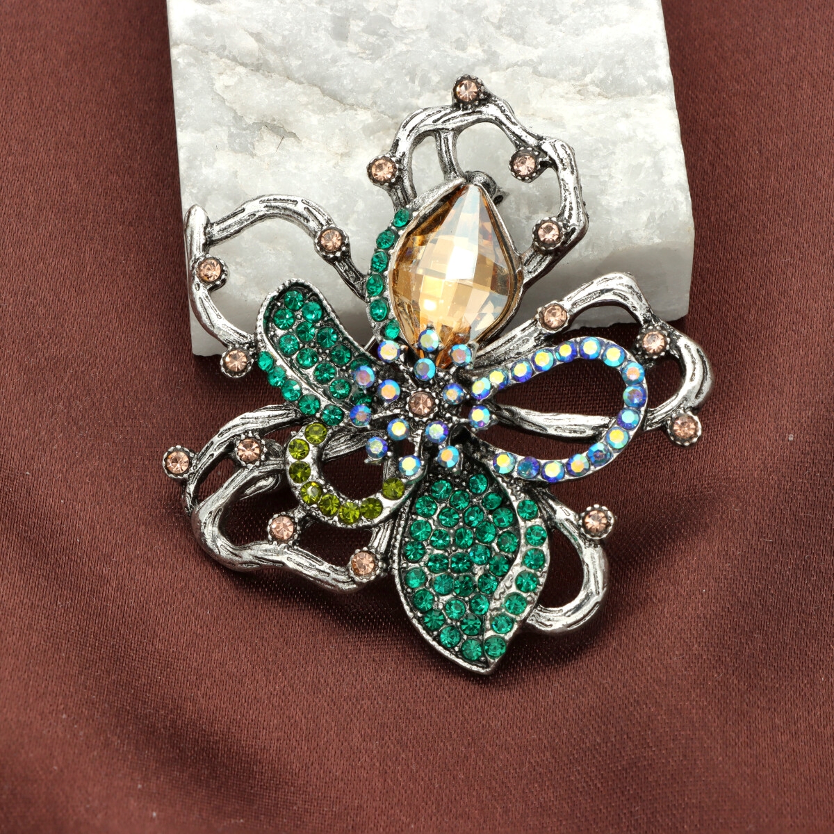 Elegancka broszka wykonana z wysokiej jakości szkła fasetowanego oraz metalu hypoalergicznego. Subtelny dodatek, który idealnie wpisuje się w jesienne stylizacje.