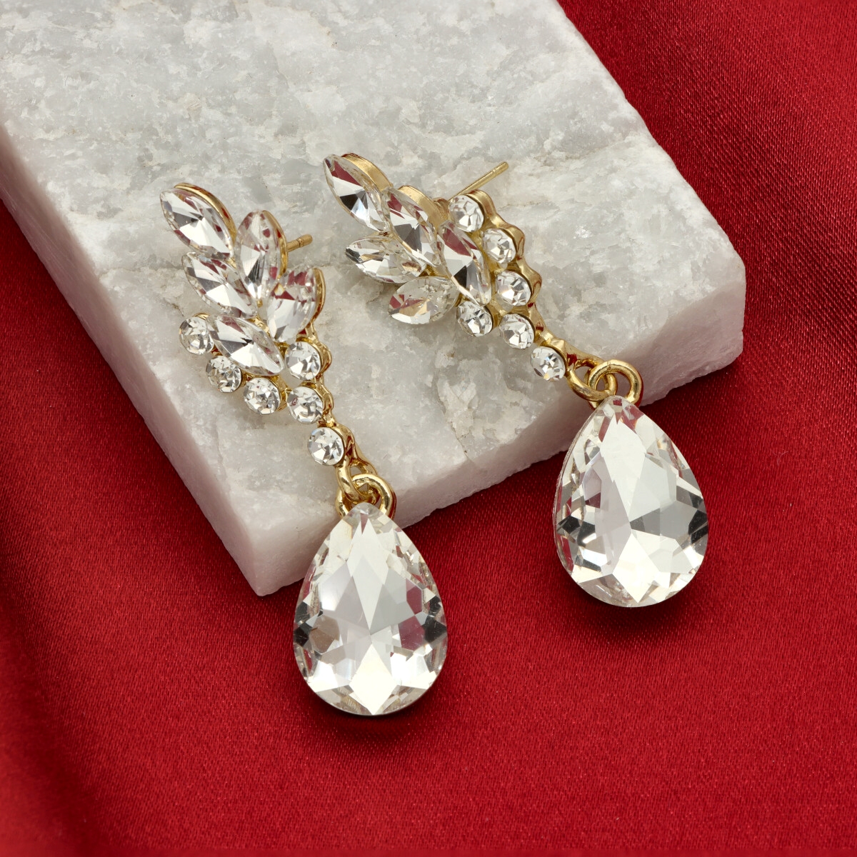 Kolczyki zostały wykonane z metalu hipoalergicznego oraz szkła fasetowanego, które efektownie odbija światło i nadaje całości szlachetnego charakteru. To doskonały wybór na przyjęcia, uroczystości rodzinne, wesela oraz inne wyjątkowe okazje.