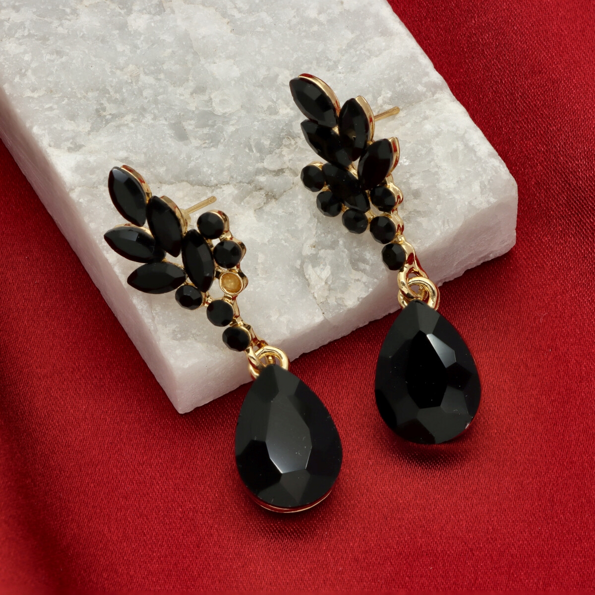 Kolczyki zostały wykonane z metalu hipoalergicznego oraz szkła fasetowanego, które efektownie odbija światło i nadaje całości szlachetnego charakteru. To doskonały wybór na przyjęcia, uroczystości rodzinne, wesela oraz inne wyjątkowe okazje.
