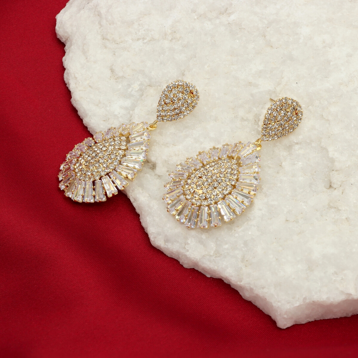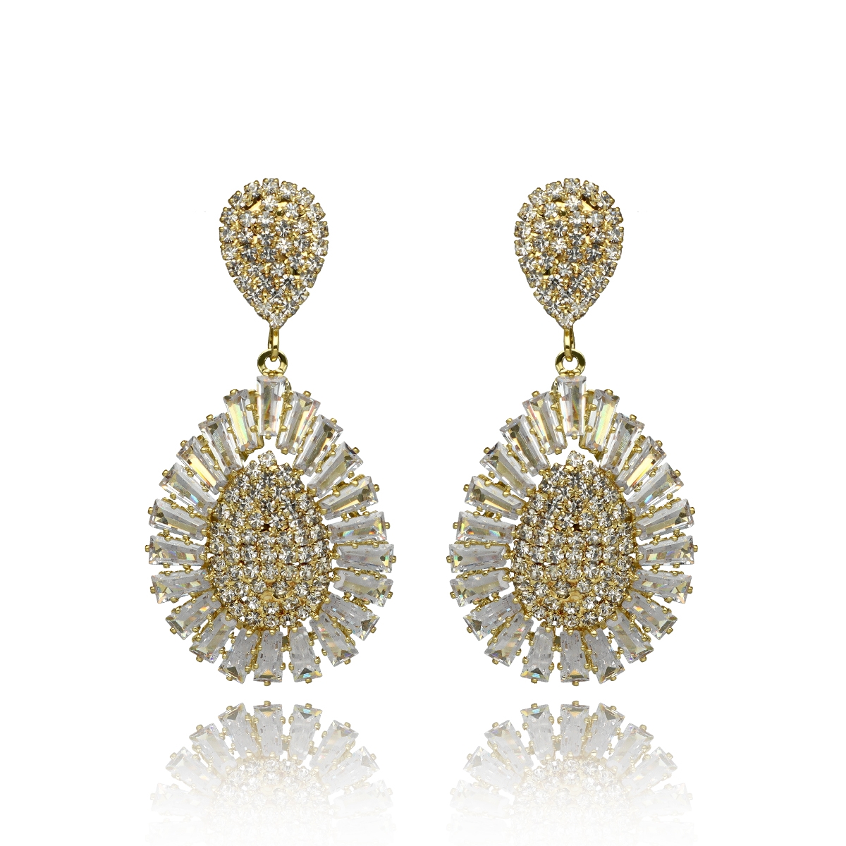 Efektowne wieczorowe kolczyki z cyrkoniami. Metal: mosiądz. Biżuteria YVON jest zawsze w 100% antyalergiczna.