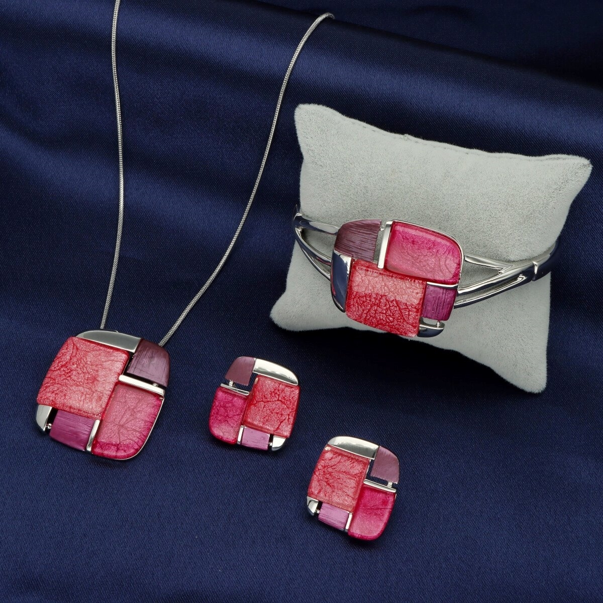 Eleganckie kolczyki wykonane z metalu antyalergicznego i żywicy. Długosć ok. 2 cm. Szukaj do kompletu bransoletki i naszyjnika o tym samym indeksie numerycznym.