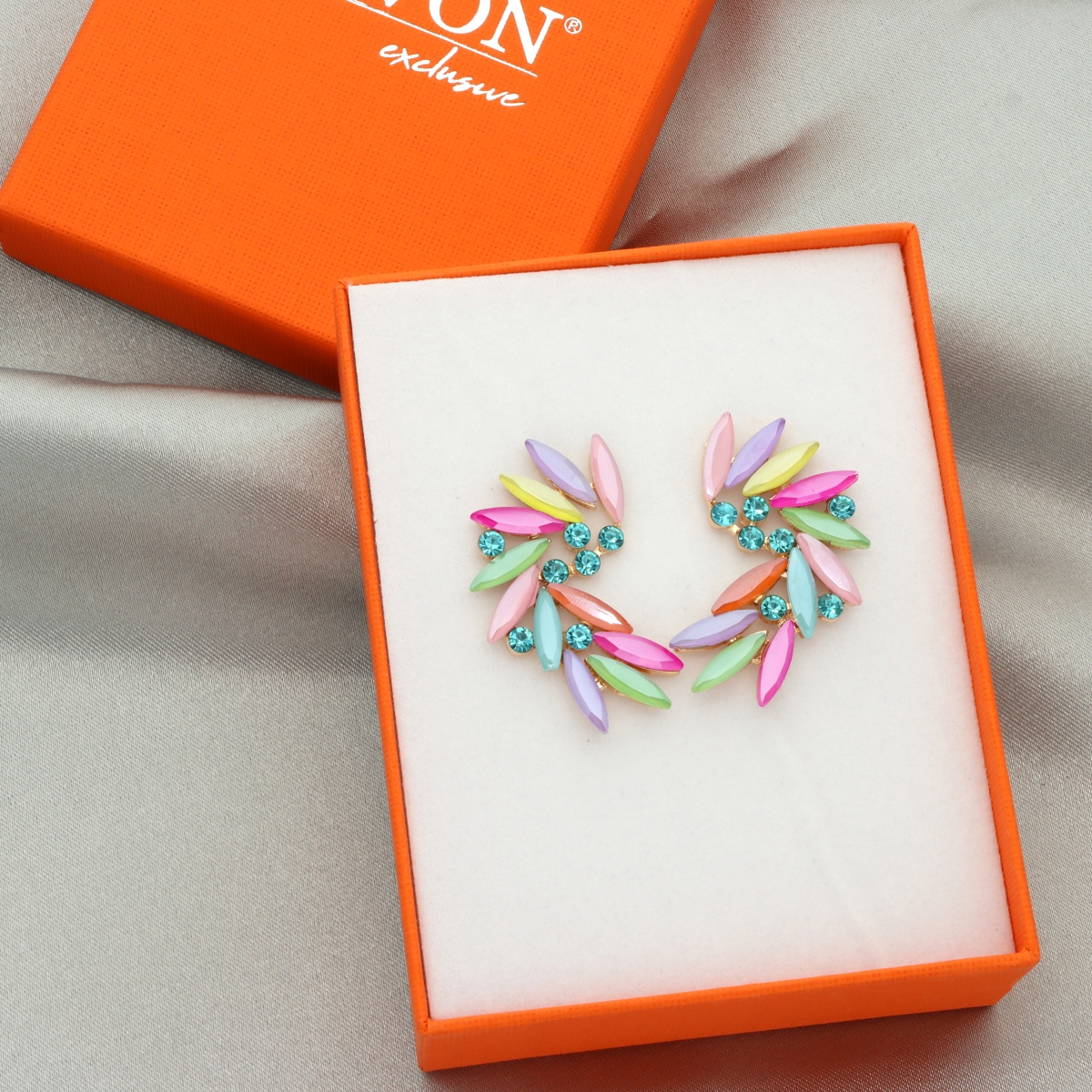 Efektowne letnie kolczyki z dymionego szkła fasetowanego. Soczysta, letnia kolorystyka. Biżuteria antyalergiczna. Długość ok. 3,5 cm. W pudełeczku (gratis).