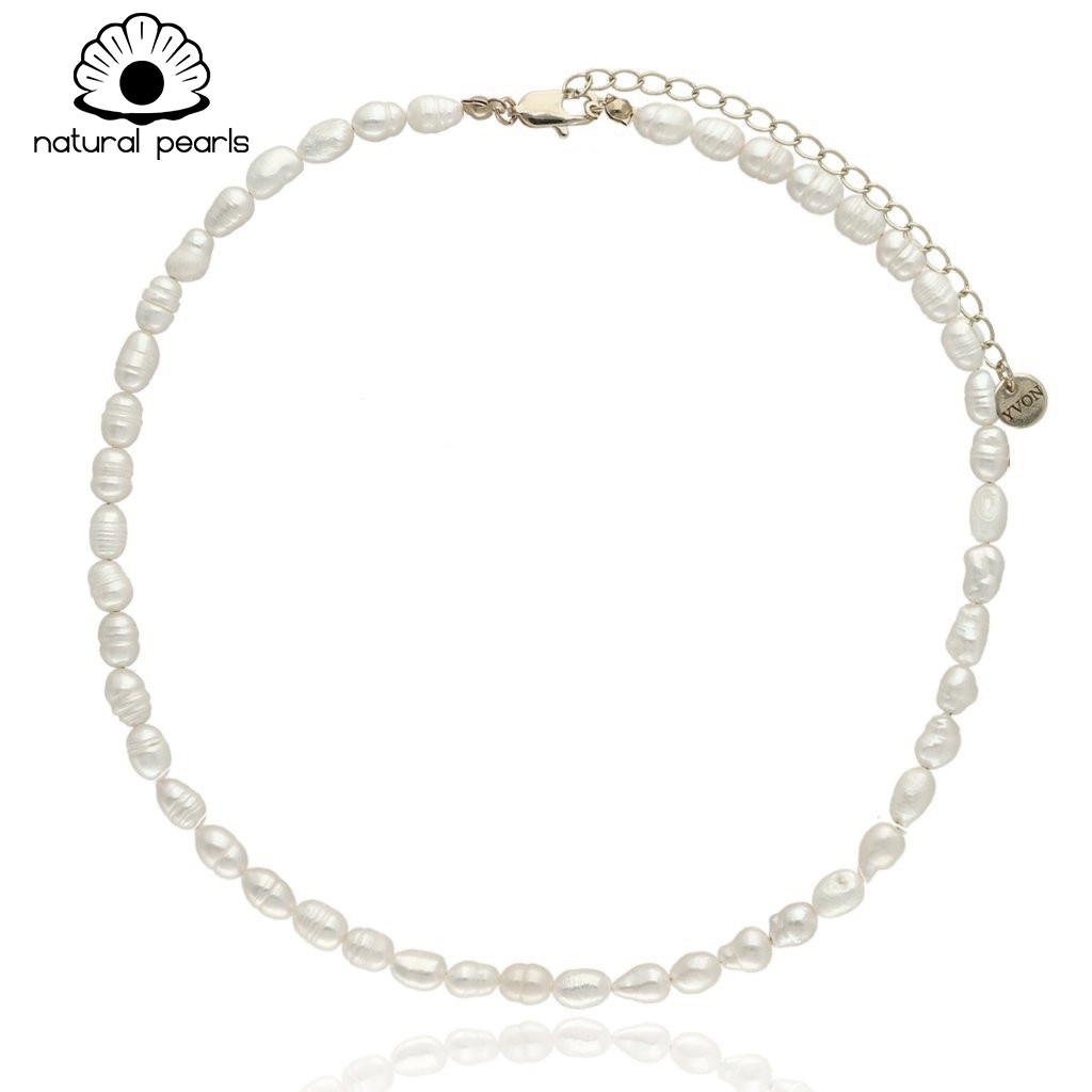 Naszyjnik wykonany z NATURALNYCH PEREŁ SŁODKOWODNYCH o subtelnym, naturalnym połysku. Każda perła różni się kształtem, co podkreśla autentyczny charakter biżuterii.