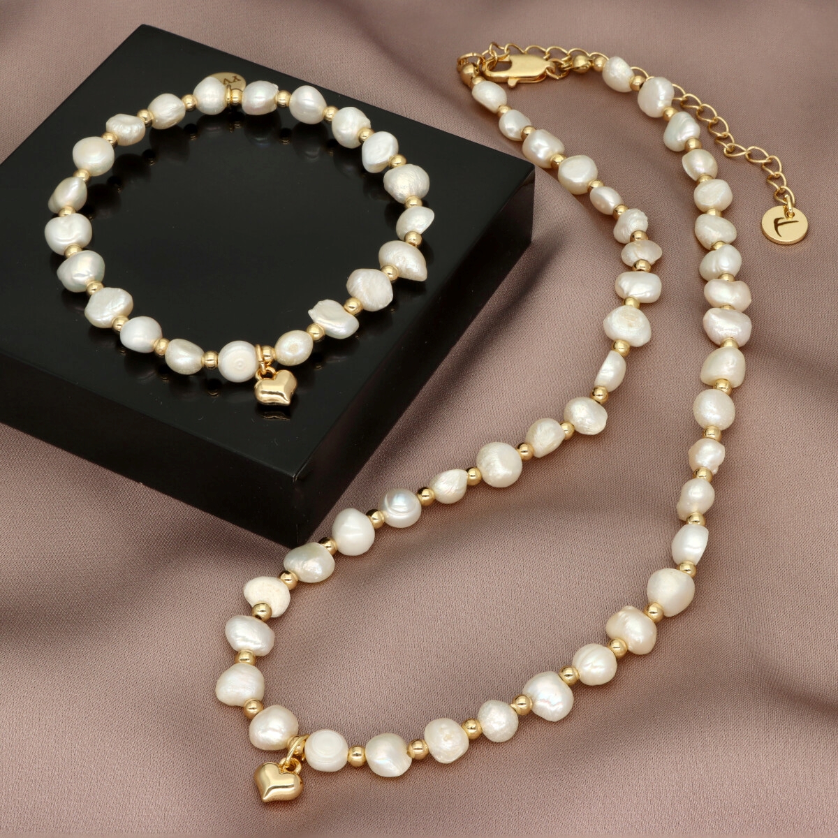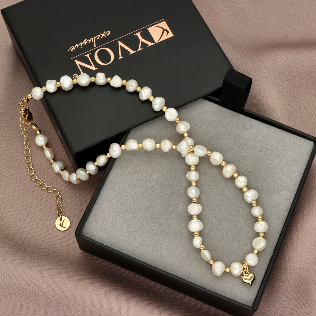 Naszyjnik wykonany z NATURALNYCH PEREŁ SŁODKOWODNYCH o subtelnym, naturalnym połysku. Każda perła różni się kształtem, co podkreśla autentyczny charakter biżuterii.