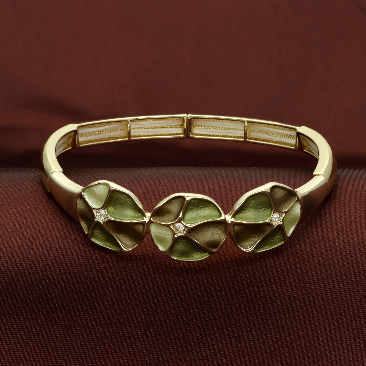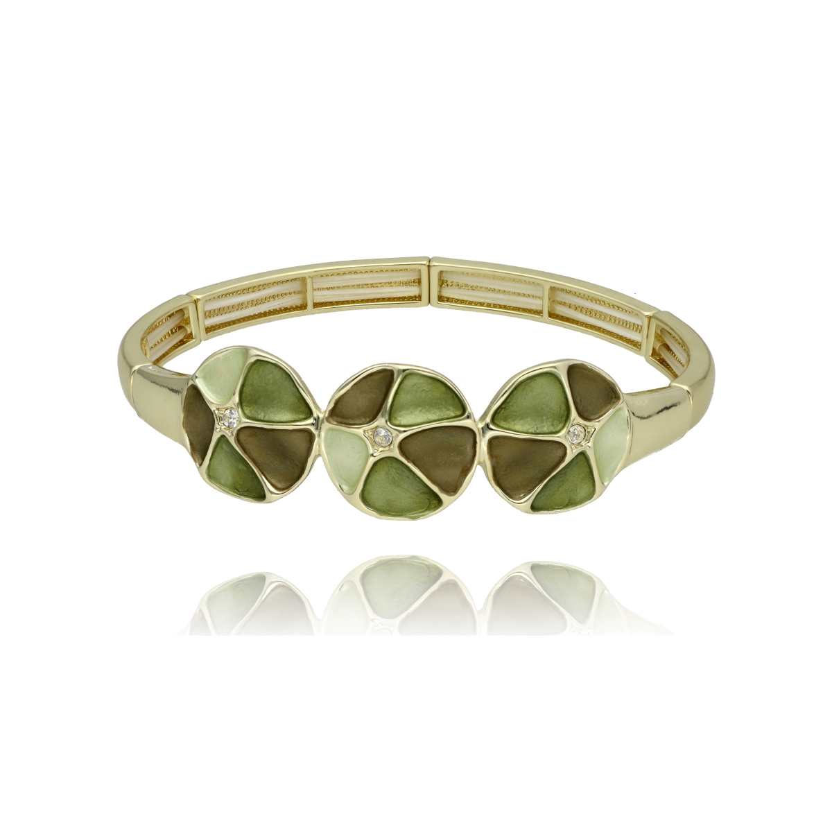 Elegancka bransoletka wykonana z metalu antyalergicznego i emalii. Rozmiar uniwersalny (na rozciągliwych gumkach). Szukaj do kompletu naszyjnika i kolczyków o tym samym indeksie numerycznym.