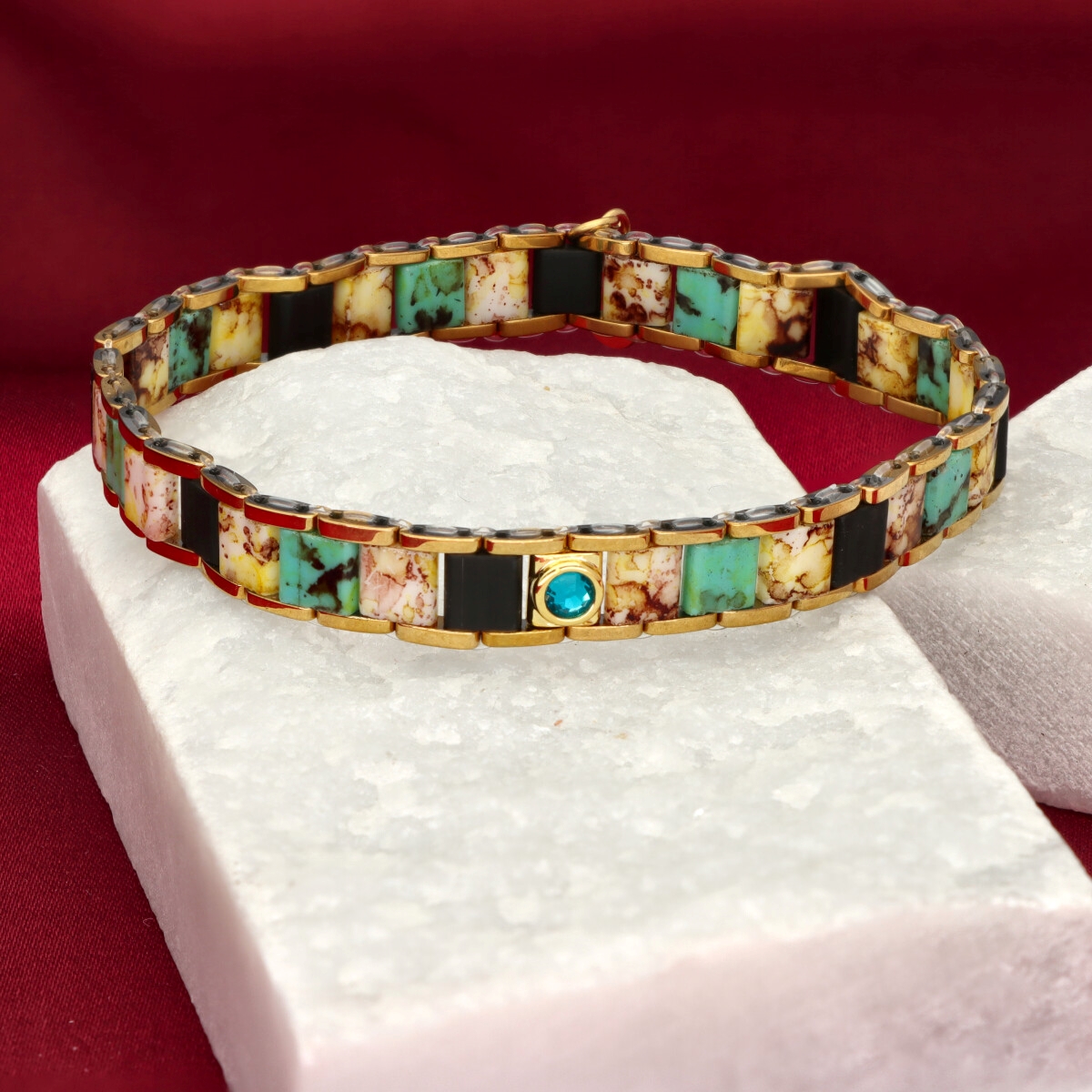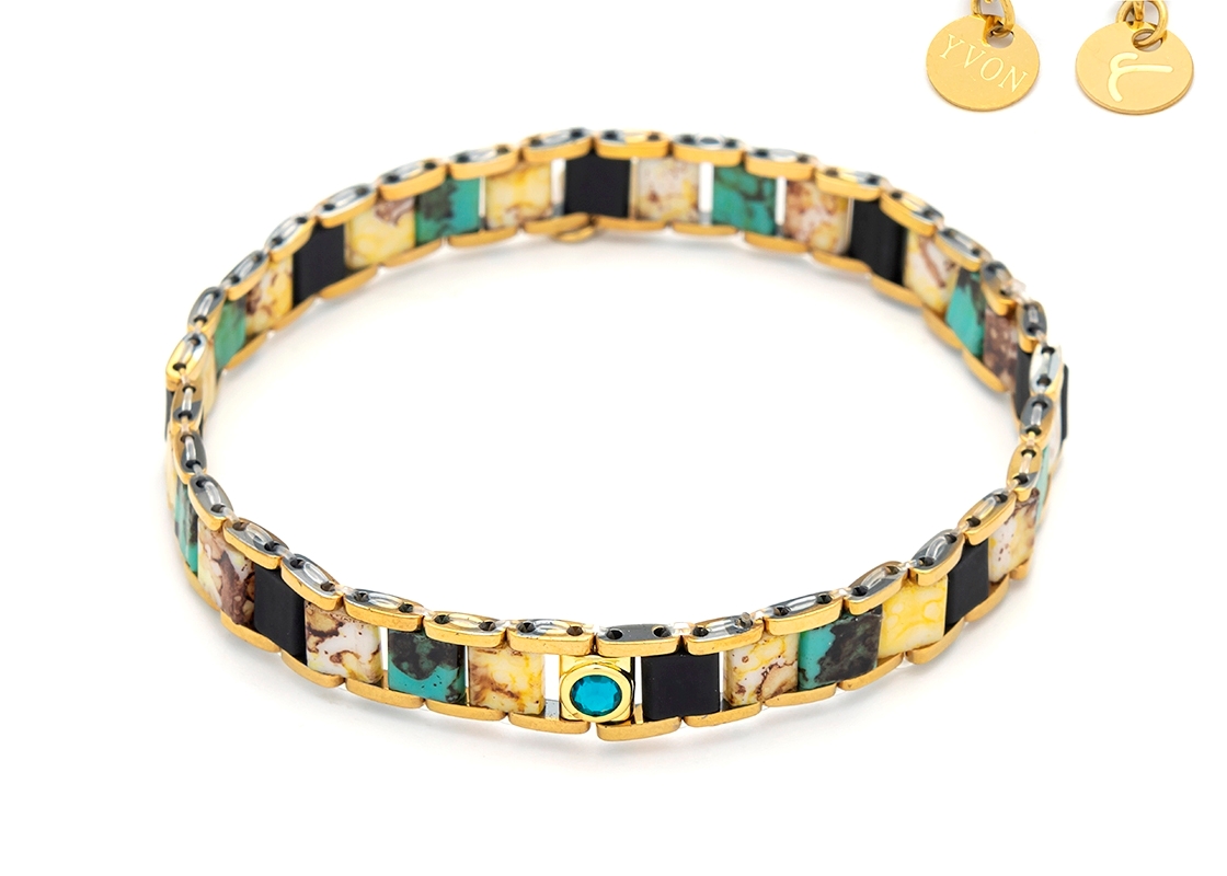 Bransoleta wykonana z oryginalnych japońskich koralików Tila, które słyną z niezwykłej precyzji i perfekcyjnie gładkich kształtów. Każdy element został starannie ułożony, tworząc efektowną kompozycję o rzemieślnicznym charakterze. Centralne ozdobne oczko z cyrkonią dodaje całości wyjątkowego blasku i elegancji. Bransoleta zapakowana w ekskluzywne pudełko YVON Exclusive – idealny pomysł na prezent dla osoby, która ceni styl i kunszt wykonania.