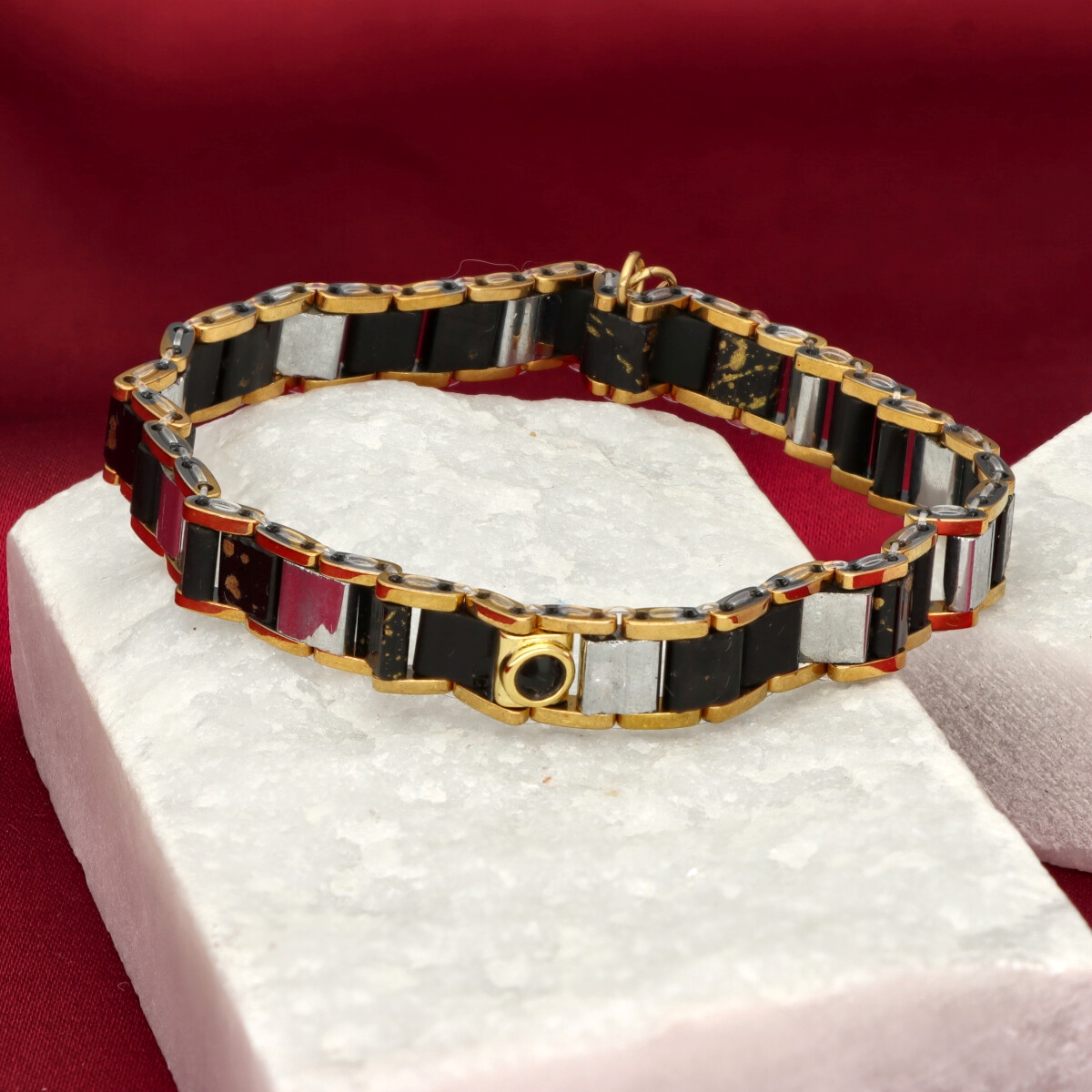 Bransoleta wykonana z oryginalnych japońskich koralików Tila, które słyną z niezwykłej precyzji i perfekcyjnie gładkich kształtów. Każdy element został starannie ułożony, tworząc efektowną kompozycję o rzemieślnicznym charakterze. Centralne ozdobne oczko z cyrkonią dodaje całości wyjątkowego blasku i elegancji. Bransoleta zapakowana w ekskluzywne pudełko YVON Exclusive – idealny pomysł na prezent dla osoby, która ceni styl i kunszt wykonania.
