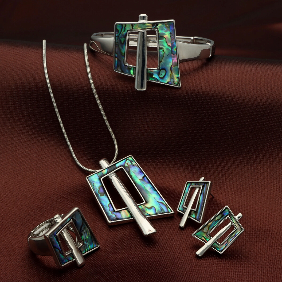 Kolczyki z muszli naturalnej ABALONE – długość ok 2 cm, na sztyfcie. Wyraziste, a jednocześnie lekkie kolczyki na sztyfcie, wykonane z metalu antyalergicznego – bezpieczne nawet dla wrażliwej skóry, ozdobione naturalną muszlą Abalone, tworzące stylowy, artystyczny efekt. Kolczyki świetnie komponują się z naszyjnikiem, pierścionkiem i bransoletką z tej samej serii. Idealne jako samodzielna ozdoba lub element efektownego zestawu biżuterii. Produkt zapakowany jest w efektowne czerwone pudełko. Do kompletu proponujemy Naszyjnik (N), bransoletkęi (B) oraz pierścionek (R) o tym samym indeksie numerycznym.