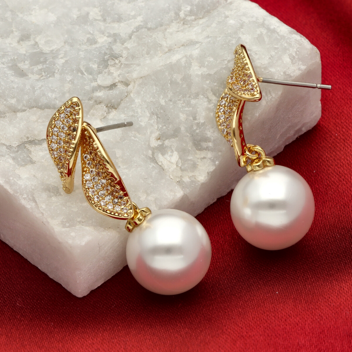Wyjątkowe kolczyki wykonane z hipoalergicznego metalu na bazie mosiądzu, perły shell, ozdobione wysokiej jakości cyrkoniami, które pięknie odbijają światło i nadają biżuterii eleganckiego blasku. To idealny wybór dla osób, które cenią sobie wyrafinowane dodatki podkreślające charakter stylizacji.