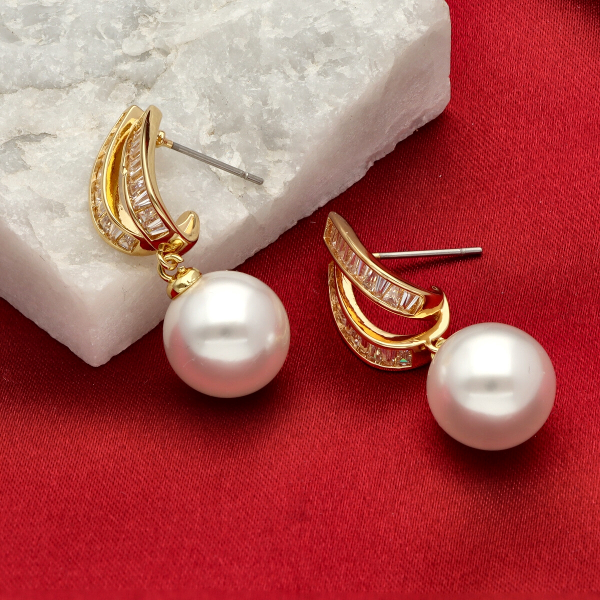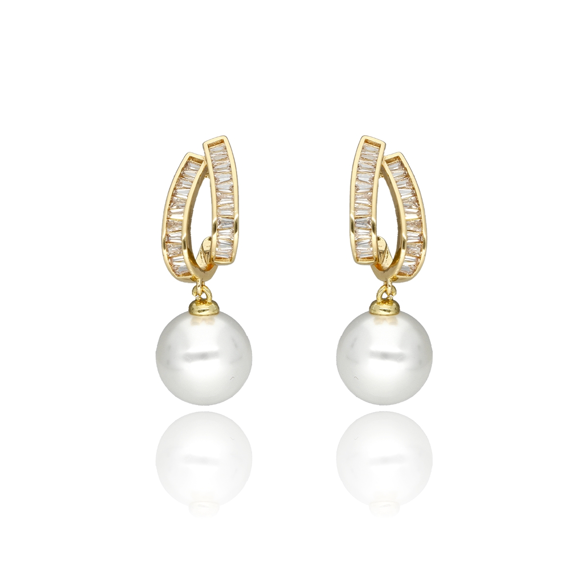 Wyjątkowe kolczyki wykonane z hipoalergicznego metalu na bazie mosiądzu, perły shell, ozdobione wysokiej jakości cyrkoniami, które pięknie odbijają światło i nadają biżuterii eleganckiego blasku. To idealny wybór dla osób, które cenią sobie wyrafinowane dodatki podkreślające charakter stylizacji.
