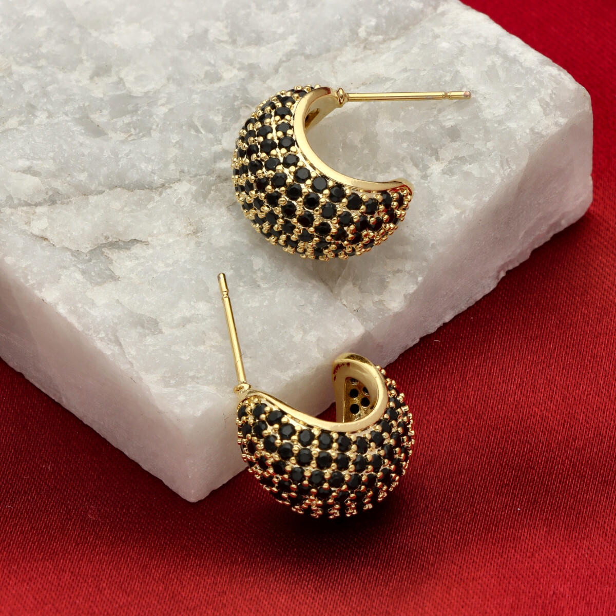 Wyjątkowe kolczyki wykonane z hipoalergicznego metalu na bazie mosiądzu, ozdobione wysokiej jakości cyrkoniami, które pięknie odbijają światło i nadają biżuterii eleganckiego blasku. To idealny wybór dla osób, które cenią sobie wyrafinowane dodatki podkreślające charakter stylizacji.
