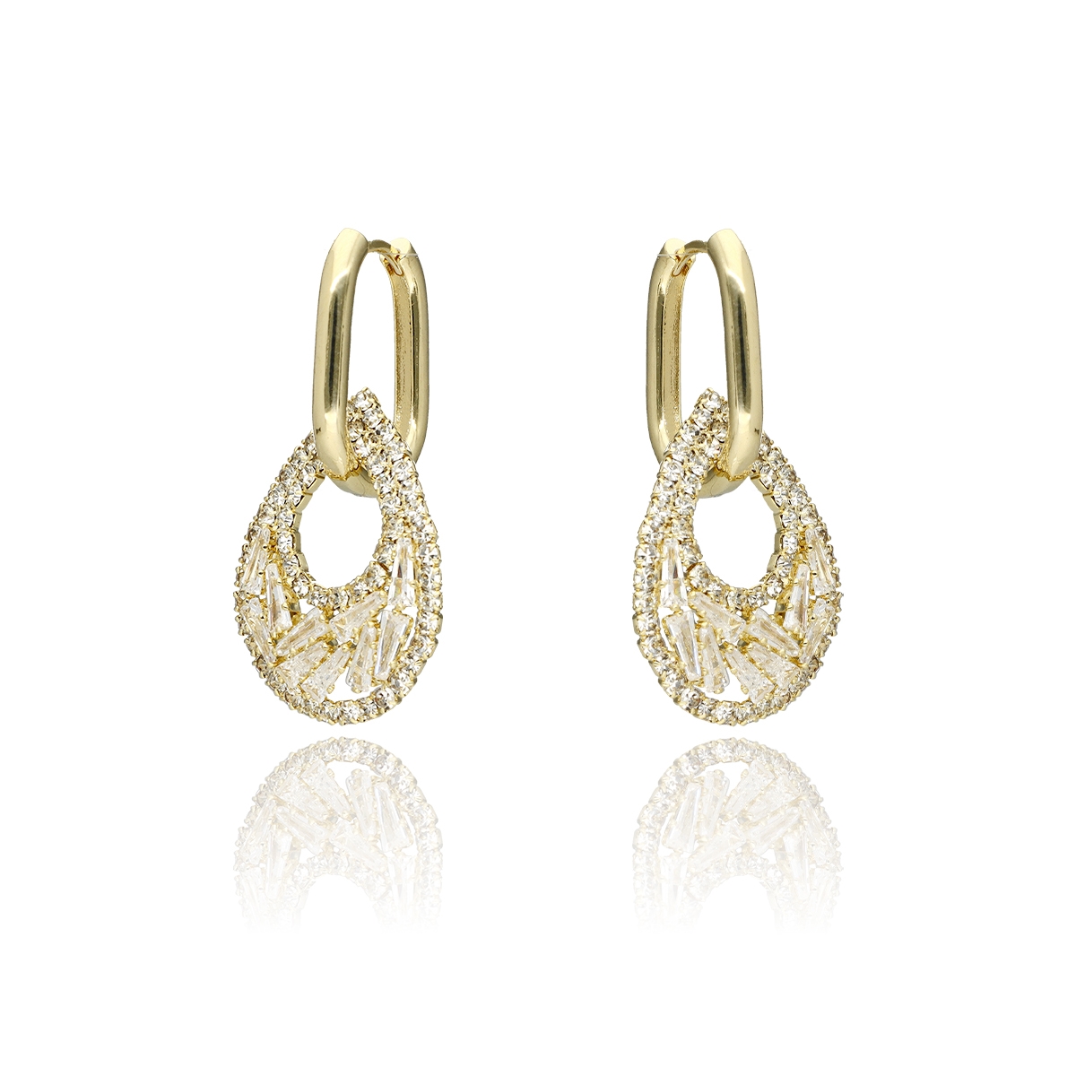 Wyjątkowe kolczyki wykonane z hipoalergicznego metalu na bazie mosiądzu, ozdobione wysokiej jakości cyrkoniami, które pięknie odbijają światło i nadają biżuterii eleganckiego blasku. To idealny wybór dla osób, które cenią sobie wyrafinowane dodatki podkreślające charakter stylizacji.