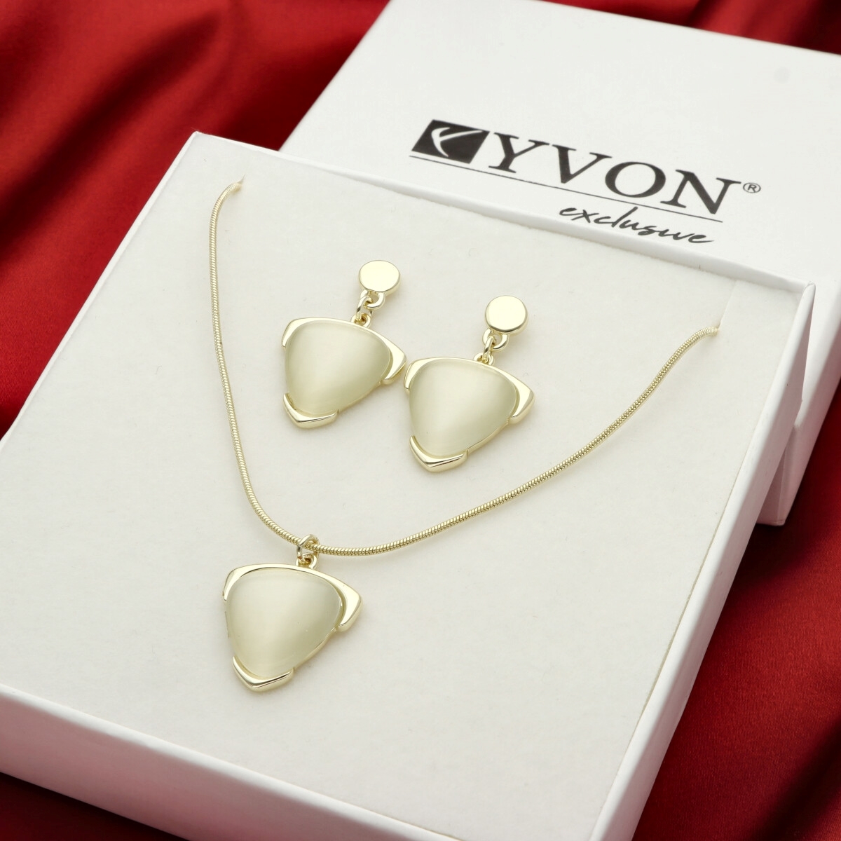 Komplet biżuterii składający się z naszyjnika oraz kolczyków, zapakowany w pudełko prezentowe. Wykonany z hipoalergicznego metalu oraz KWARCU. Lekka forma zapewnia komfort codziennego użytkowania. Długość naszyjnika wynosi 42 cm, dodatkowo 8 cm zawieszki. Długość kolczyków to około 3 cm. Specyfikacja: zestaw: naszyjnik + kolczyki materiał: hipoalergiczny metal, KWARC długość naszyjnika: 42 cm + 8 cm zawieszka długość kolczyków: ok. 3 cm pudełko prezentowe w zestawie
