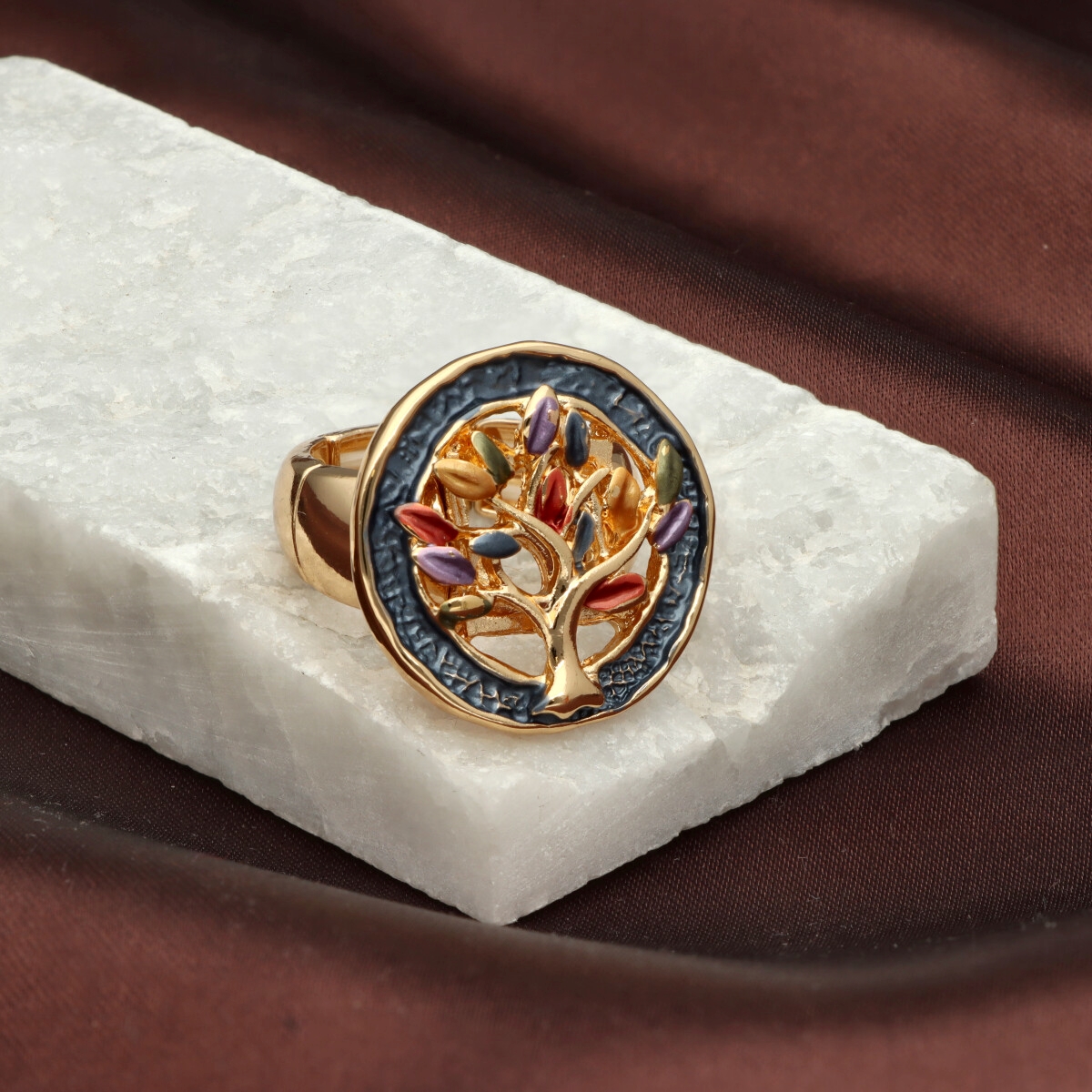 Pierścionek z kolekcji YVON BIŻUTERIA ARTYSTYCZNA, wykonany z metalu hipoalergicznego. Zdobiony emaliowanym motywem o artystycznym charakterze, dopracowany w każdym detalu. Dzięki elastycznej konstrukcji pierścionek doskonale dopasowuje się do palca i zapewnia wygodę noszenia. Całość zapakowana w eleganckie pudełko prezentowe YVON.