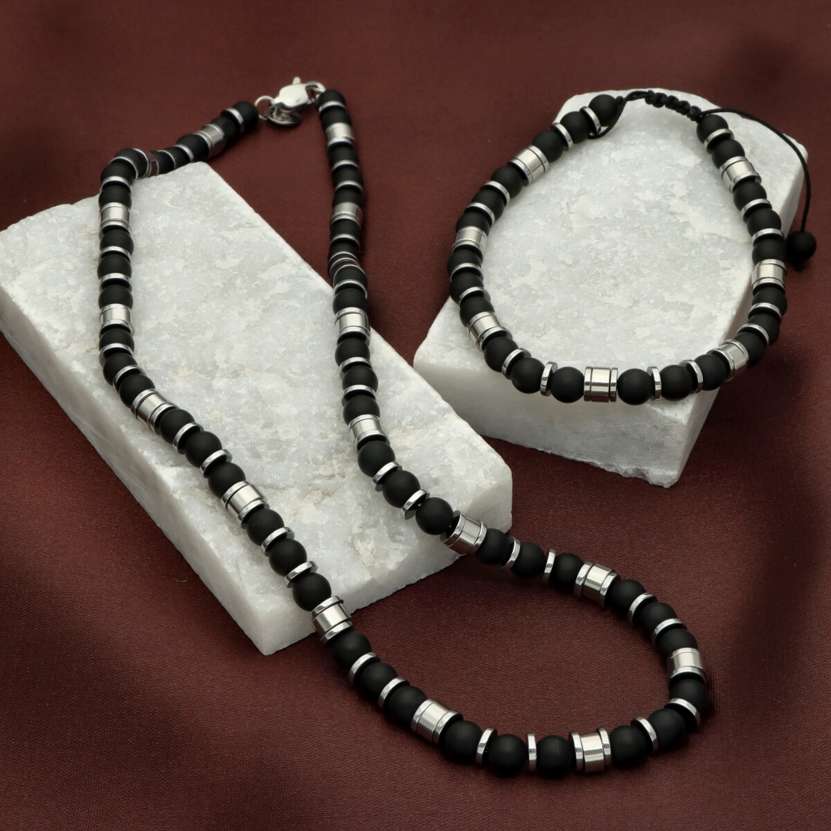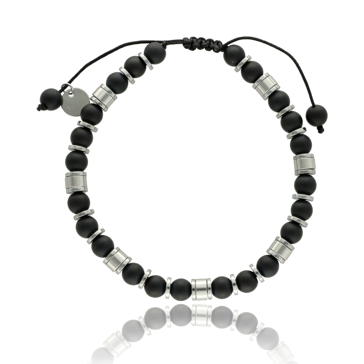 Bransoletka męska YVES wykonana z naturalnych kamieni – AGAT – zestawionych ze stalą szlachetną. Osadzona na wytrzymałych, elastycznych gumkach, dzięki czemu dopasowuje się do każdego nadgarstka. W pełni antyalergiczna, komfortowa w noszeniu. Bransoletka pakowana w eleganckie pudełko, idealna zarówno na co dzień, jak i w formie prezentu. Stanowi komplet z naszyjnikiem o tym samym indeksie.