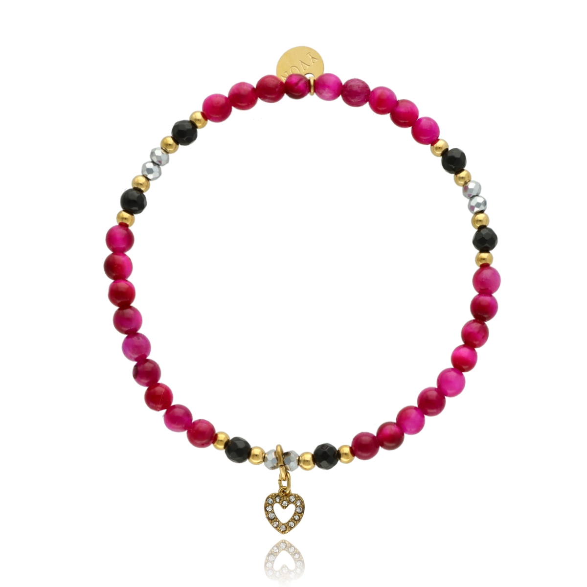 Delikatna bransoletka wykonana z różowego tygrysiego oka i agatu, uzupełniona pozłacaną stalą szlachetną. Kamienie dodają całości głębi, a eleganckie złocenie subtelnie podkreśla kobiecy styl.