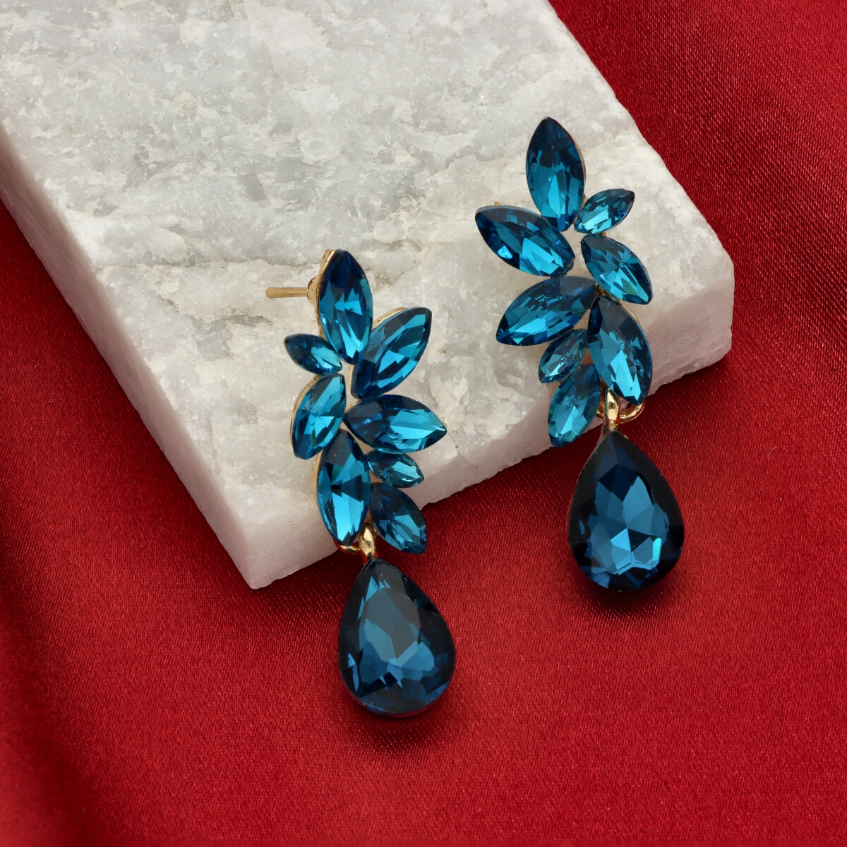 Kolczyki zostały wykonane z metalu hipoalergicznego oraz szkła fasetowanego, które efektownie odbija światło i nadaje całości szlachetnego charakteru. To doskonały wybór na przyjęcia, uroczystości rodzinne, wesela oraz inne wyjątkowe okazje.