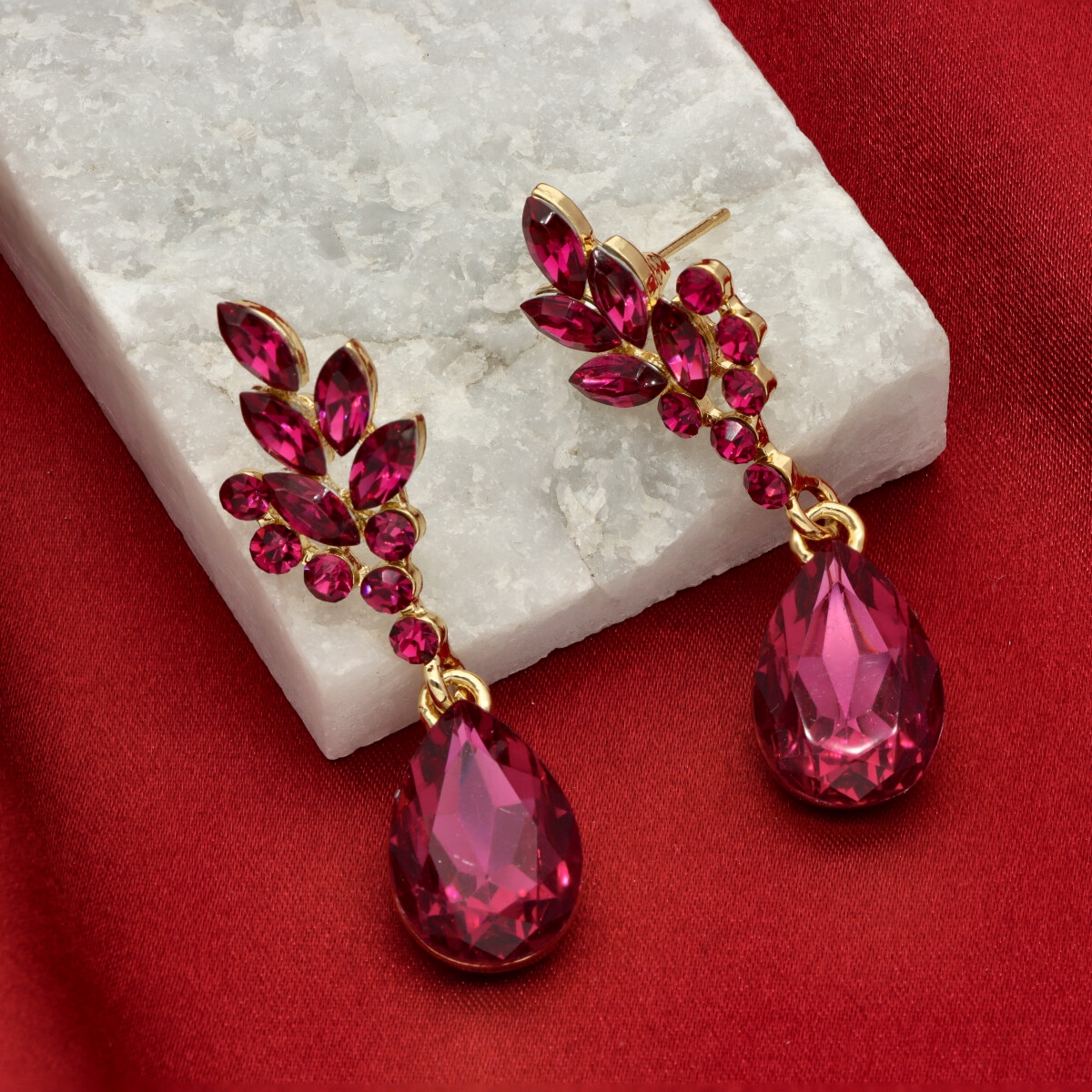 Kolczyki zostały wykonane z metalu hipoalergicznego oraz szkła fasetowanego, które efektownie odbija światło i nadaje całości szlachetnego charakteru. To doskonały wybór na przyjęcia, uroczystości rodzinne, wesela oraz inne wyjątkowe okazje.