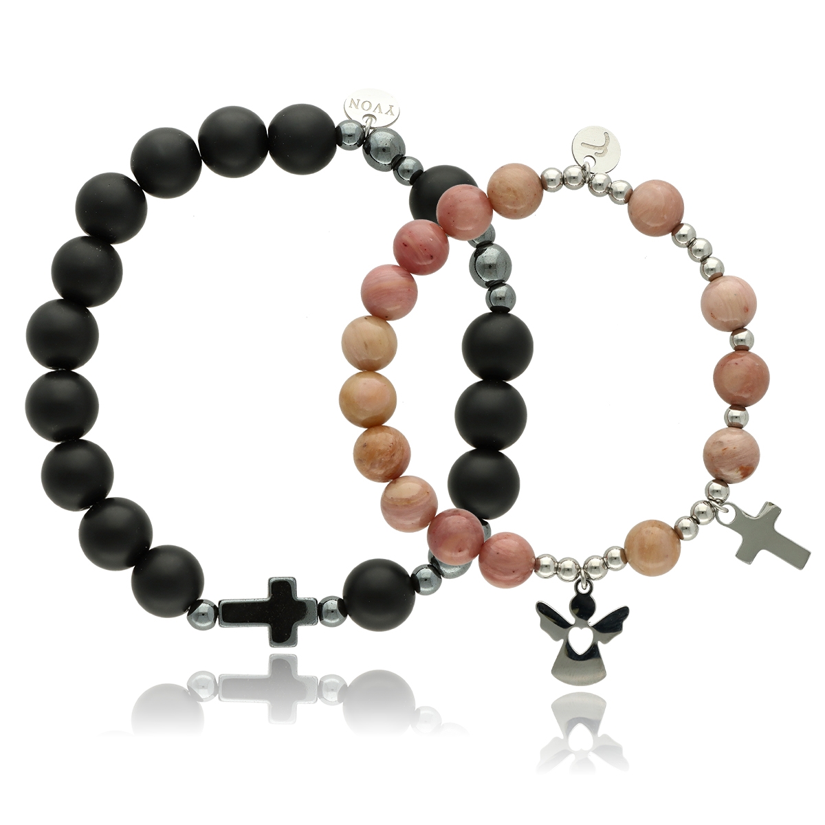 Elegancki zestaw różańców stworzony z myślą o parze — dla niej i dla niego. Wykonany z naturalnych kamieni oraz ze stali szlachetnej 316L, złoconej trwałą metodą PVD, która zapewnia odporność powłoki i piękny wygląd przez długi czas.
