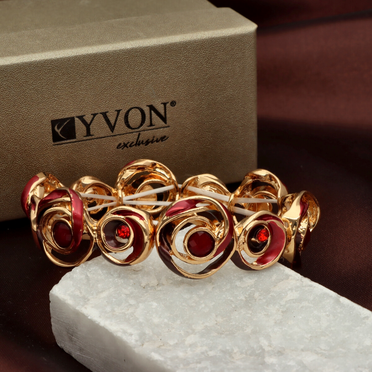 Bransoleta z kolekcji YVON BIŻUTERIA ARTYSTYCZNA, wykonana z metalu hipoalergicznego i zdobiona emaliowanymi elementami. Konstrukcja oparta na elastycznych gumeczkach dopasowuje się do każdego nadgarstka, zapewniając komfort noszenia. Wykończona z dbałością o detale, zachwyca artystycznym wzornictwem. Zapakowana w eleganckie pudełko prezentowe YVON – doskonały wybór zarówno do codziennych, jak i wieczorowych stylizacji.