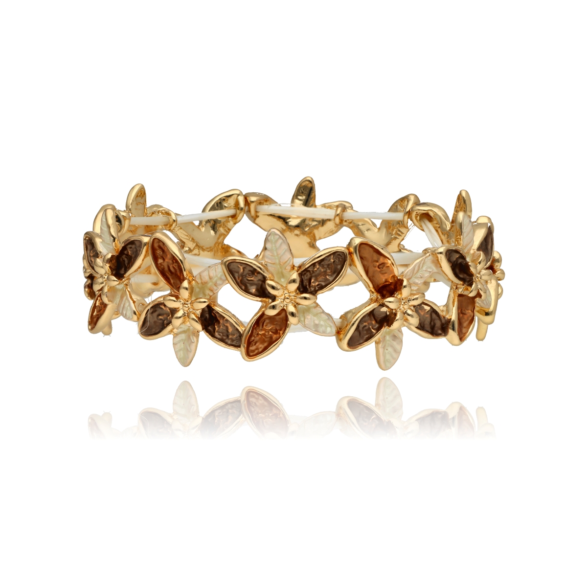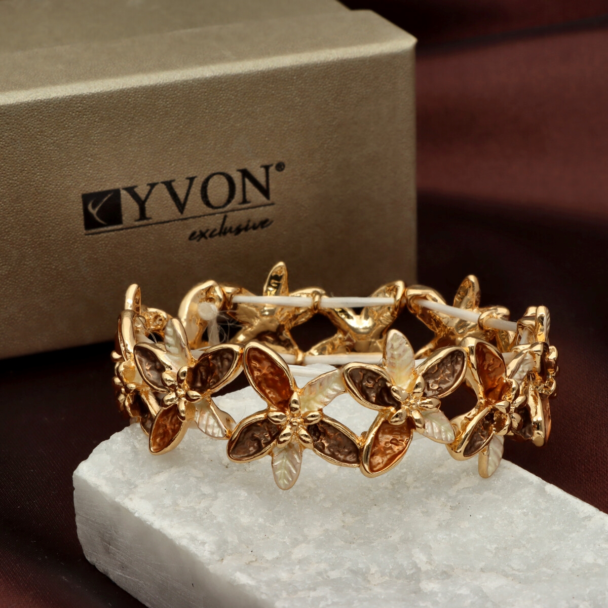 Bransoleta z kolekcji YVON BIŻUTERIA ARTYSTYCZNA, wykonana z metalu hipoalergicznego i zdobiona emaliowanymi elementami. Konstrukcja oparta na elastycznych gumeczkach dopasowuje się do każdego nadgarstka, zapewniając komfort noszenia. Wykończona z dbałością o detale, zachwyca artystycznym wzornictwem. Zapakowana w eleganckie pudełko prezentowe YVON – doskonały wybór zarówno do codziennych, jak i wieczorowych stylizacji.