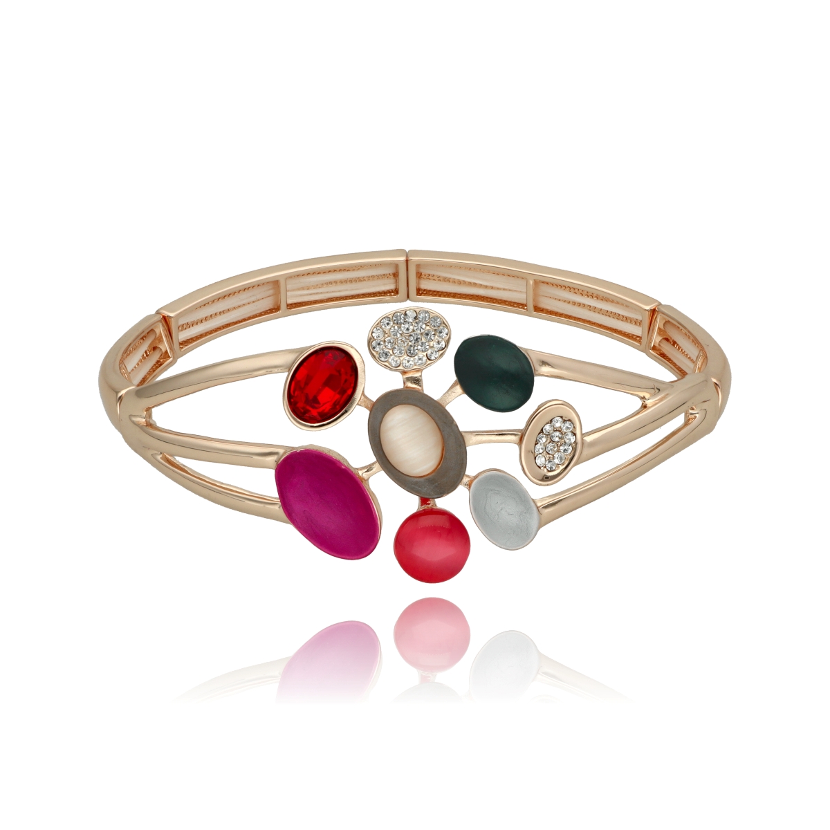 Elegancka bransoletka wykonana z metalu, kwarcu, szkła kryształowego i cyrkonii. Rozmiar uniwersalny (na rozciągliwych gumkach). Szukaj do kompletu naszyjnika i kolczyków o tym samym indeksie numerycznym.