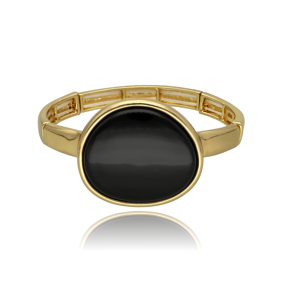 Uniwersalna, rozciągliwa bransoletka wykonana z metalu (zamak) i elementu z kolorowej żywicy. Osadzona na elastycznej gumce, dopasowuje się do większości nadgarstków, zapewniając komfort i wygodę noszenia. Metalowe wykończenia są hipoalergiczne, dzięki czemu bransoletka jest odpowiednia także dla osób o wrażliwej skórze. W komplecie z pierścionkiem, klipsami i naszyjnikiem z tej samej serii tworzy harmonijną, efektowną całość.
