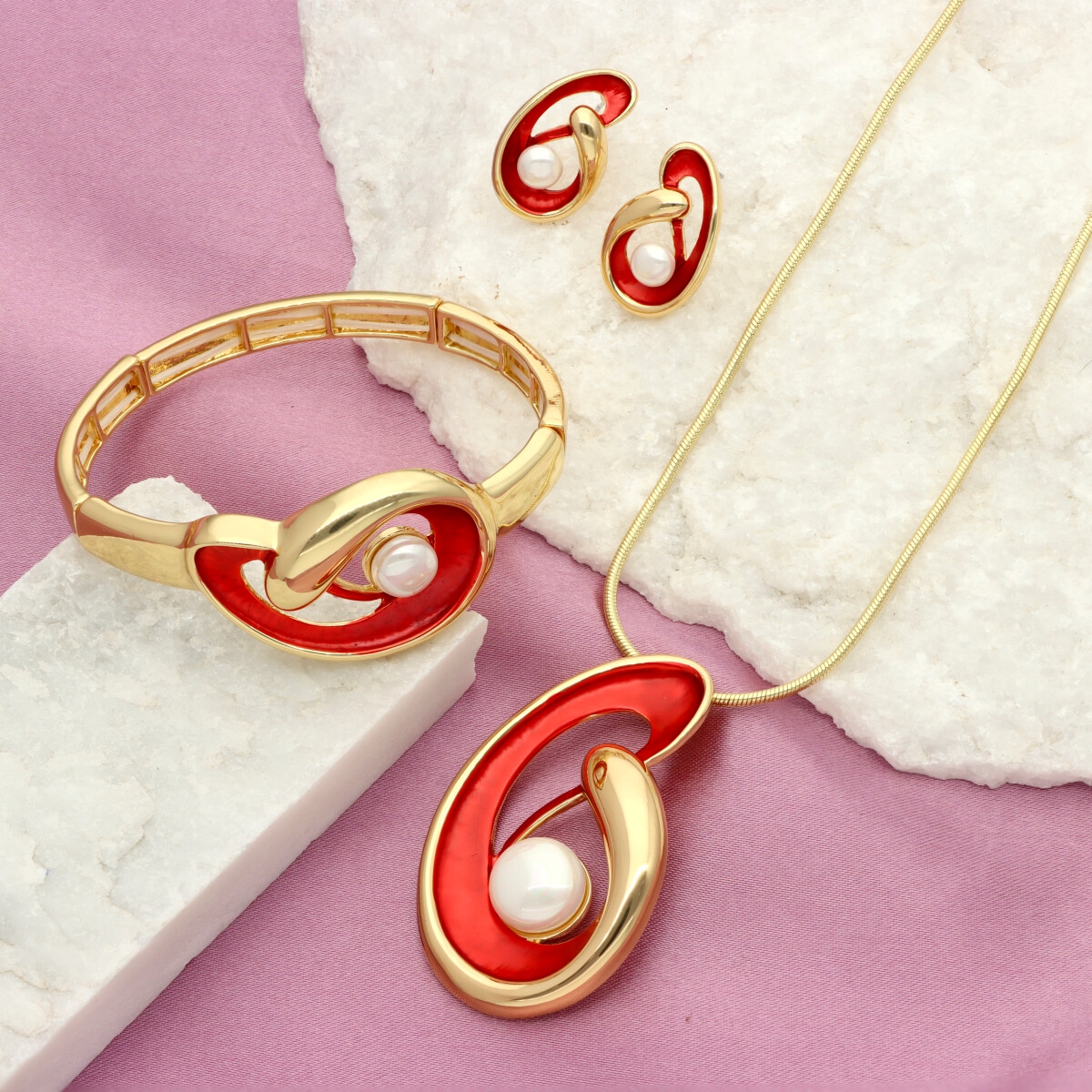 Bransoletka z perłą Shell i emalią – rozciągliwa, uniwersalna. Elastyczna bransoletka wykonana z metalowych elementów o właściwościach antyalergicznych, ozdobiona elegancką perłą Shell i subtelną emalią. Dzięki gumce dopasowuje się do nadgarstka, zapewniając wygodę noszenia. To doskonałe uzupełnienie naszyjnika i kolczyków z tej samej linii – razem tworzą harmonijny, kobiecy zestaw w nowoczesnym wydaniu.