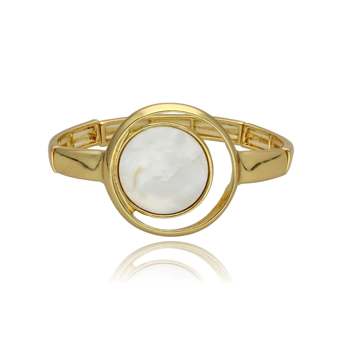 Stylowa bransoletka na elastycznej gumce, wykonana z metalowych, antyalergicznych elementów i muszli naturalnej mlecznej.