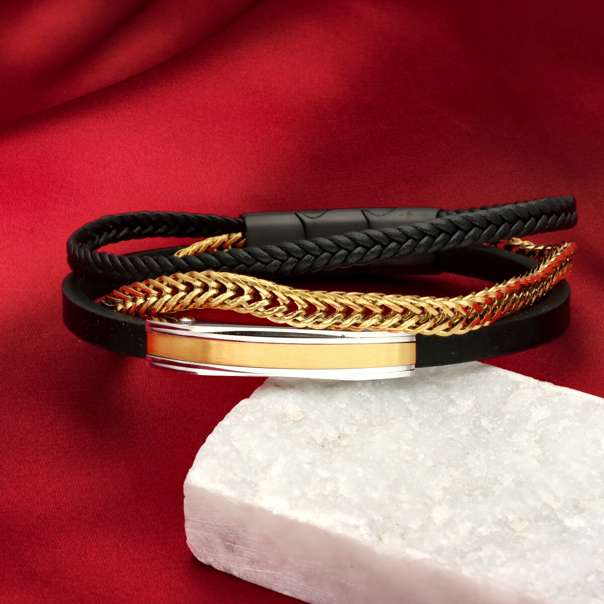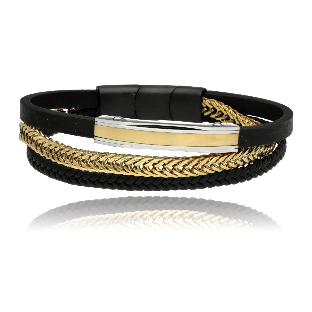 Męska bransoleta wykonana z naturalnej skóry oraz stali szlachetnej 316L, odpornej na uszkodzenia i hipoalergicznej. Prosty, nowoczesny design sprawia, że pasuje zarówno na co dzień, jak i do bardziej eleganckich stylizacji.