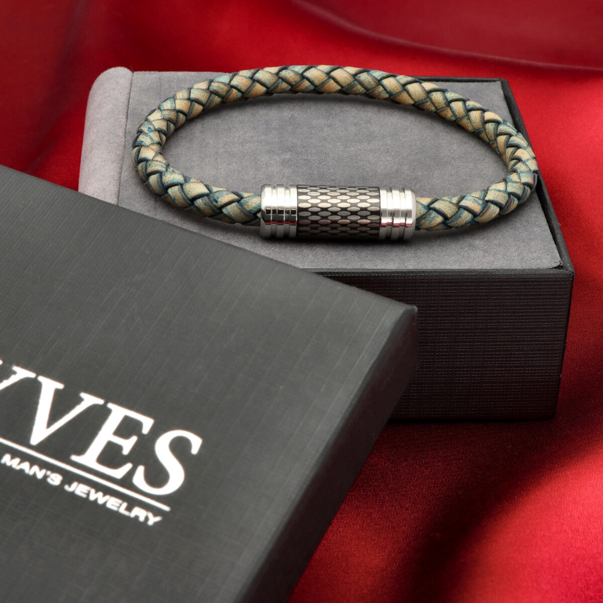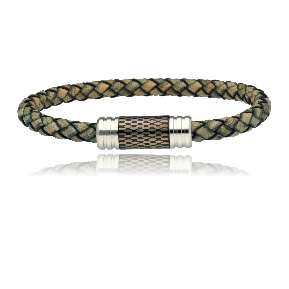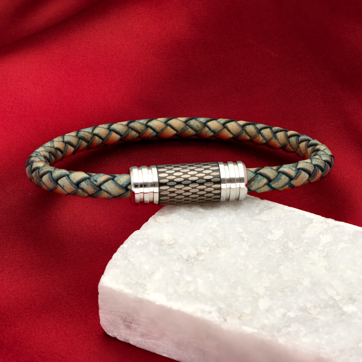 Męska bransoleta wykonana z naturalnej skóry oraz stali szlachetnej 316L, odpornej na uszkodzenia i hipoalergicznej. Prosty, nowoczesny design sprawia, że pasuje zarówno na co dzień, jak i do bardziej eleganckich stylizacji.