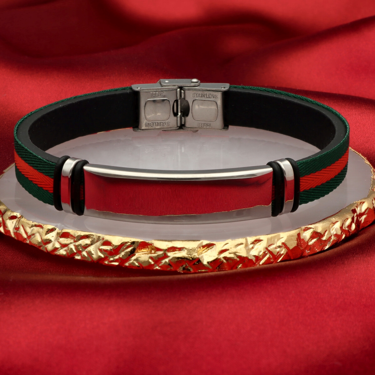 Męska bransoleta wykonana z naturalnej skóry, poliestru oraz stali szlachetnej 316L, odpornej na uszkodzenia i hipoalergicznej. Prosty, nowoczesny design sprawia, że pasuje zarówno na co dzień, jak i do bardziej eleganckich stylizacji.