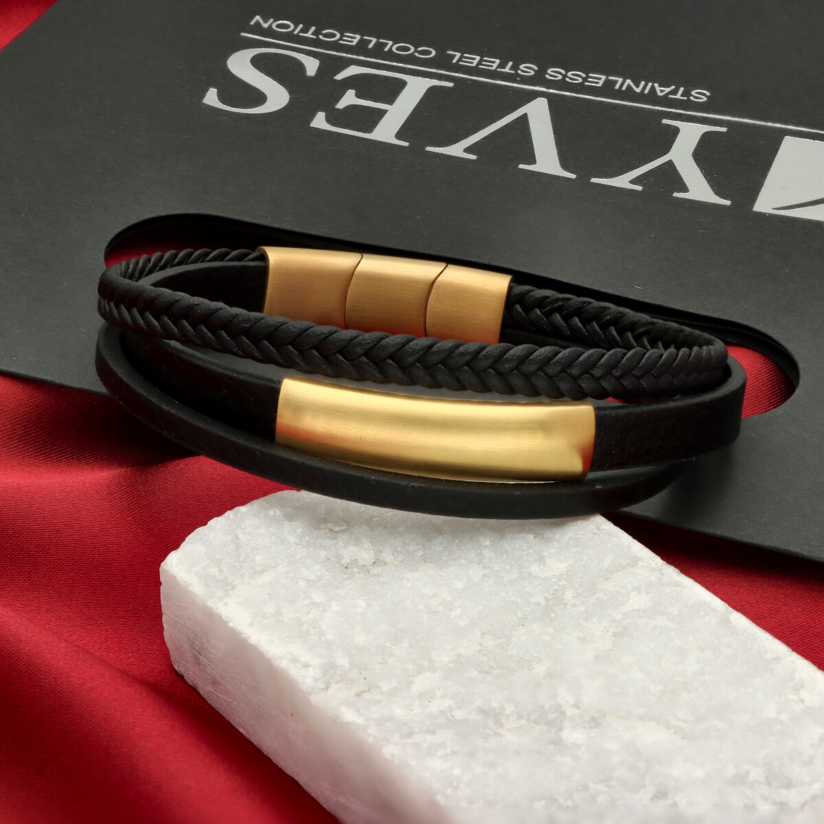 Męska bransoleta wykonana z naturalnej skóry oraz stali szlachetnej 316L, odpornej na uszkodzenia i hipoalergicznej. Prosty, nowoczesny design sprawia, że pasuje zarówno na co dzień, jak i do bardziej eleganckich stylizacji.