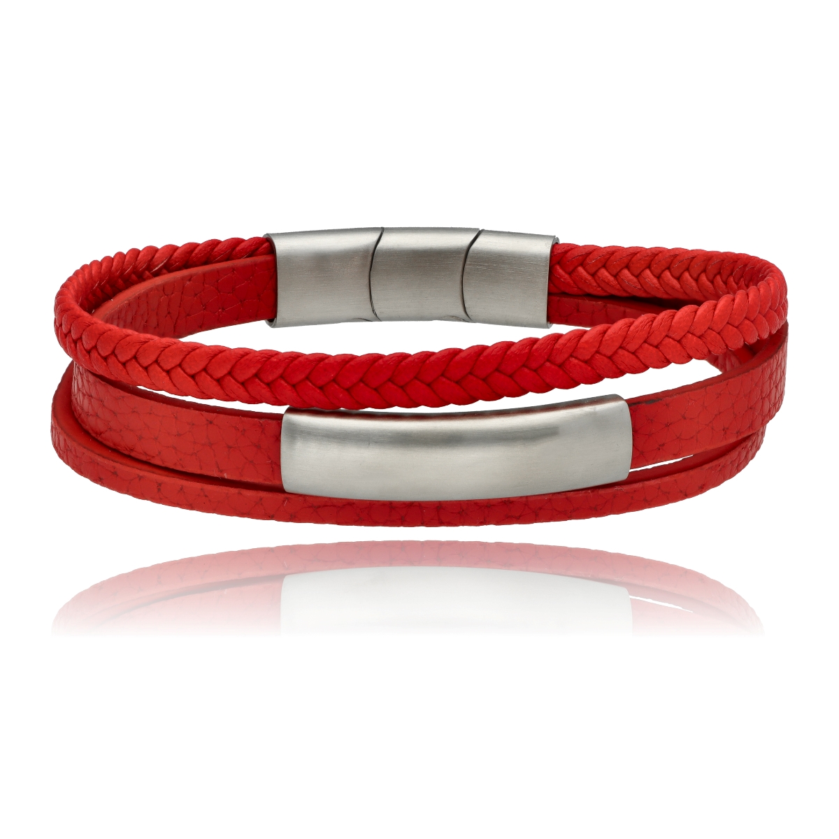 Męska bransoleta wykonana z naturalnej skóry oraz stali szlachetnej 316L, odpornej na uszkodzenia i hipoalergicznej. Prosty, nowoczesny design sprawia, że pasuje zarówno na co dzień, jak i do bardziej eleganckich stylizacji.