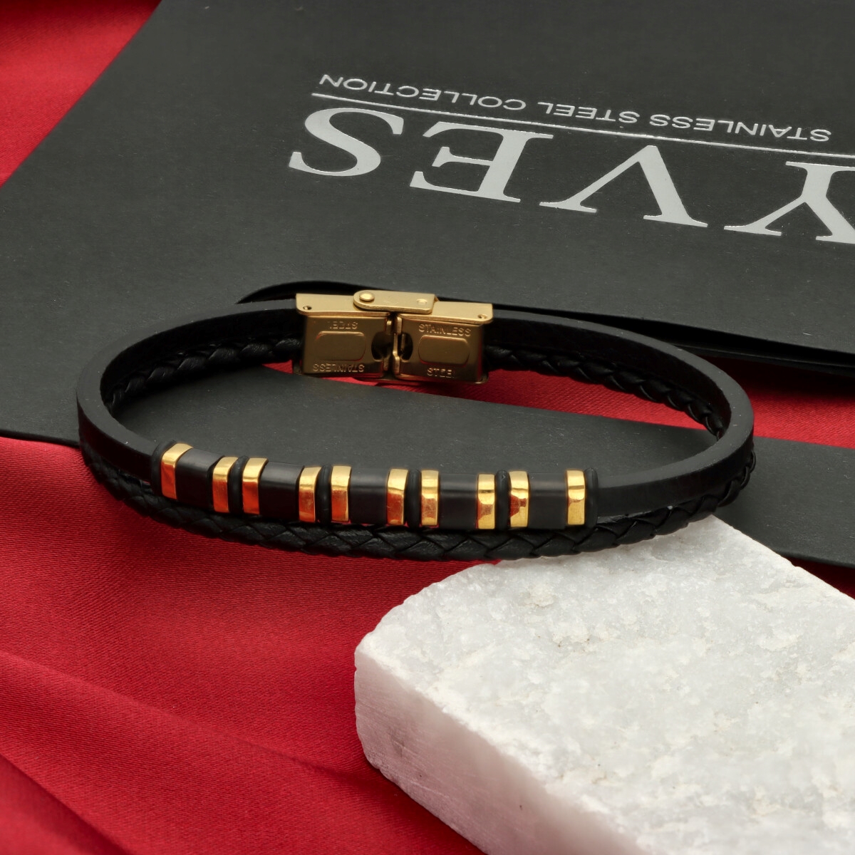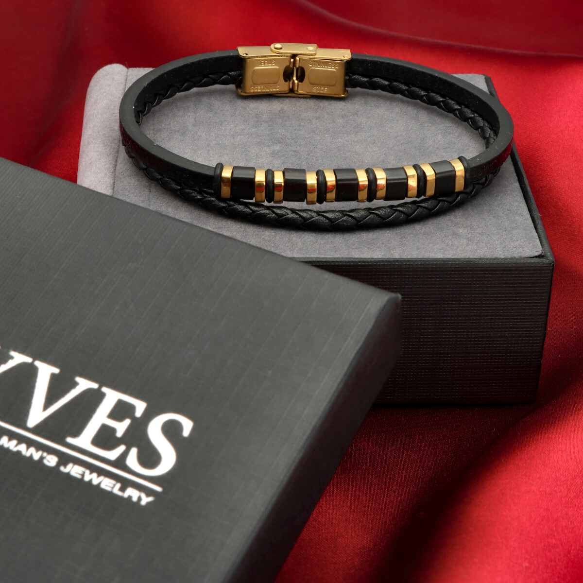 Męska bransoleta wykonana z naturalnej skóry oraz stali szlachetnej 316L, odpornej na uszkodzenia i hipoalergicznej. Prosty, nowoczesny design sprawia, że pasuje zarówno na co dzień, jak i do bardziej eleganckich stylizacji.