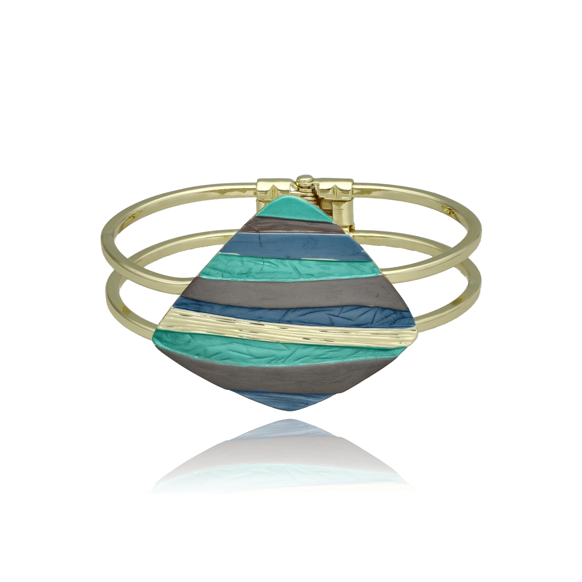 Bransoletka z ozdobnym, geometrycznym motywem o nieregularnym układzie pasów, wykonana na rozciągliwych gumkach, co zapewnia wygodę noszenia i dopasowanie do nadgarstka.