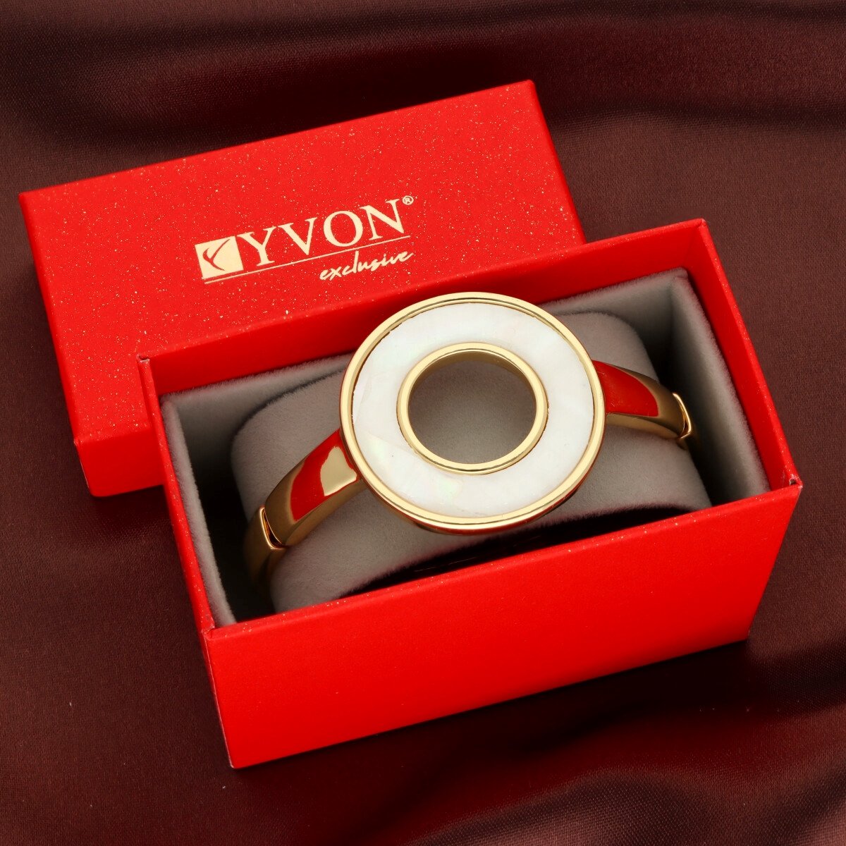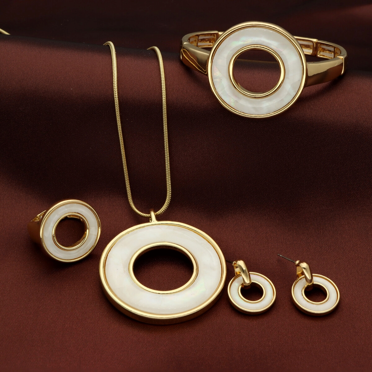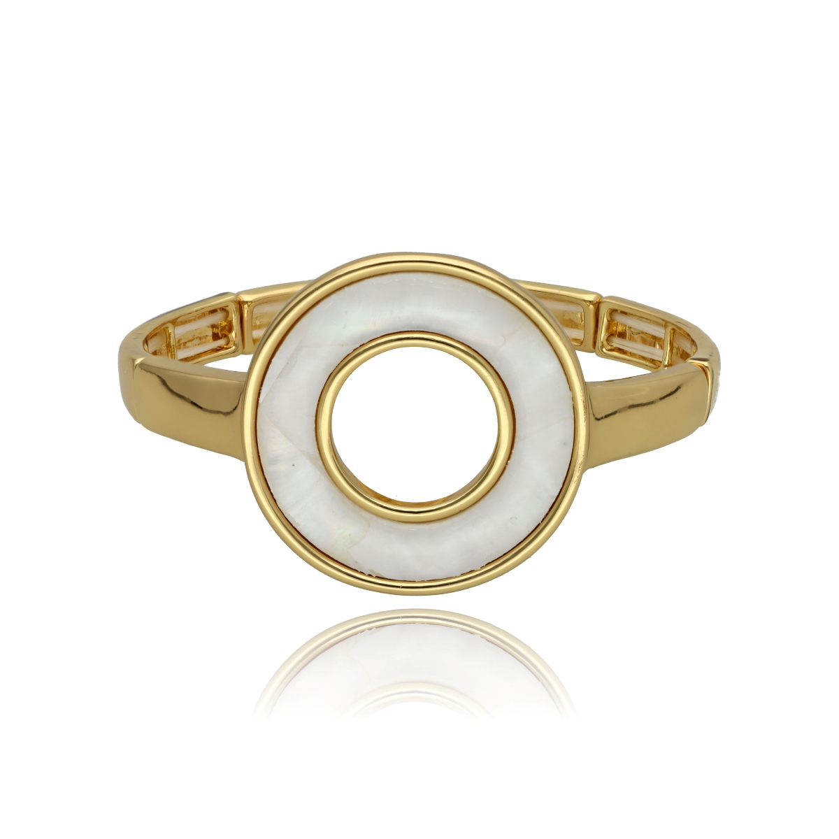 Stylowa bransoletka na elastycznej gumce, wykonana z metalowych, antyalergicznych elementów i muszli naturalnej mlecznej.