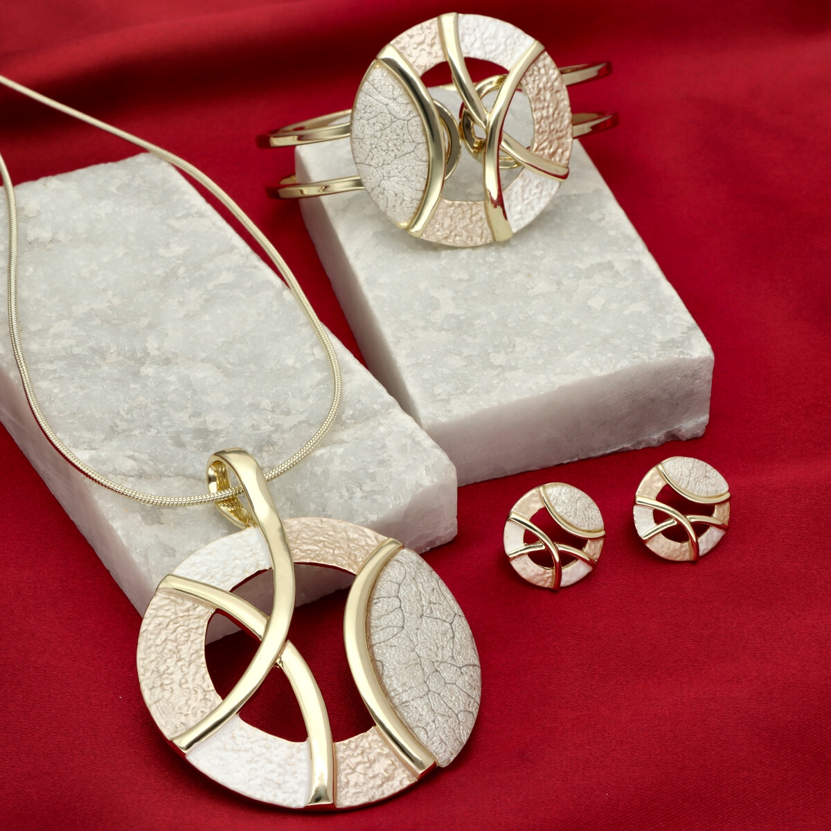 Elegancka bransoletka wykonana z metalu antyalergicznego i żywicy. Rozmiar uniwersalny (na rozciągliwych gumkach). Szukaj do kompletu naszyjnika i kolczyków o tym samym indeksie numerycznym.