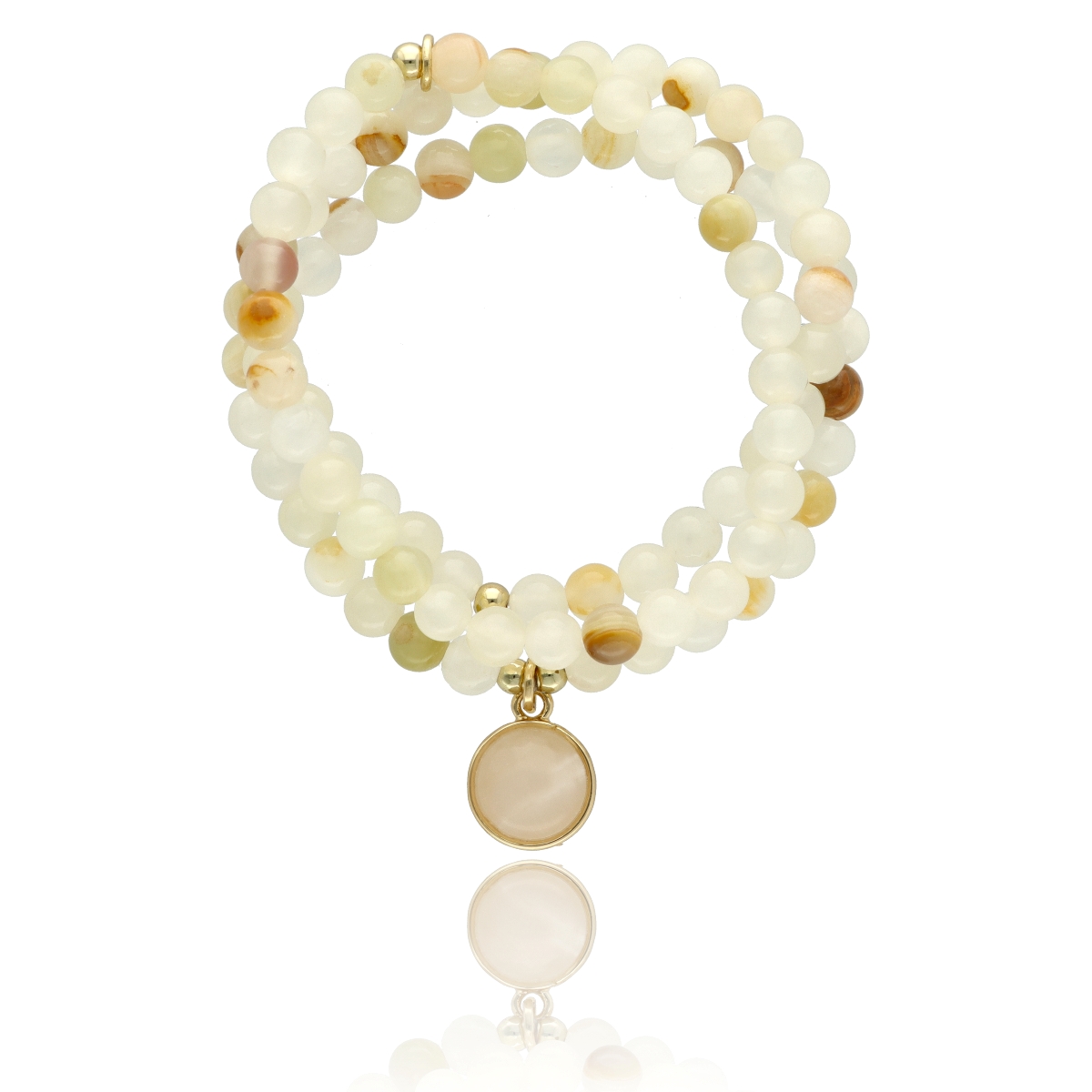 Zestaw trzech bransoletek z kamieniem naturalnym (JADEIT MLECZNY).
