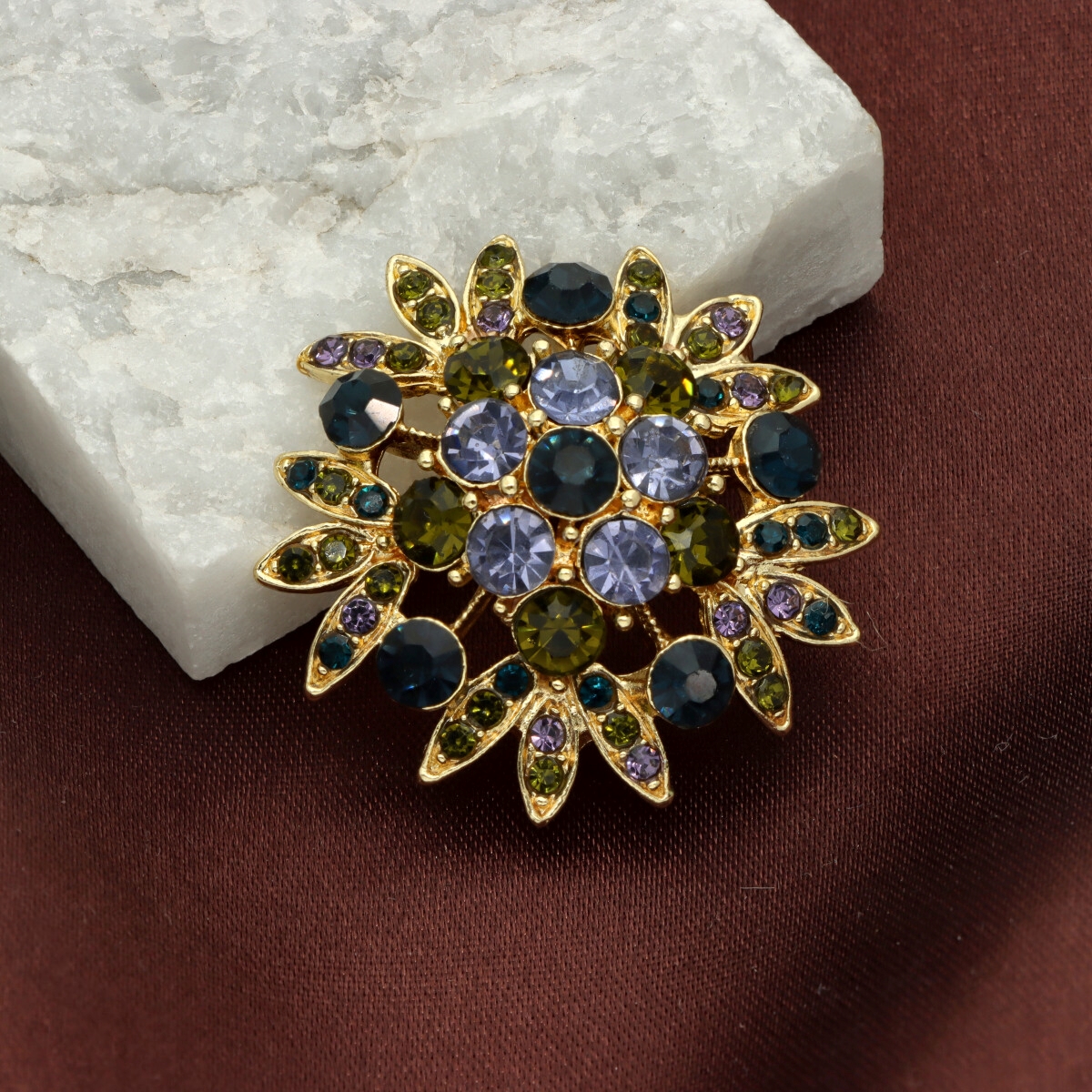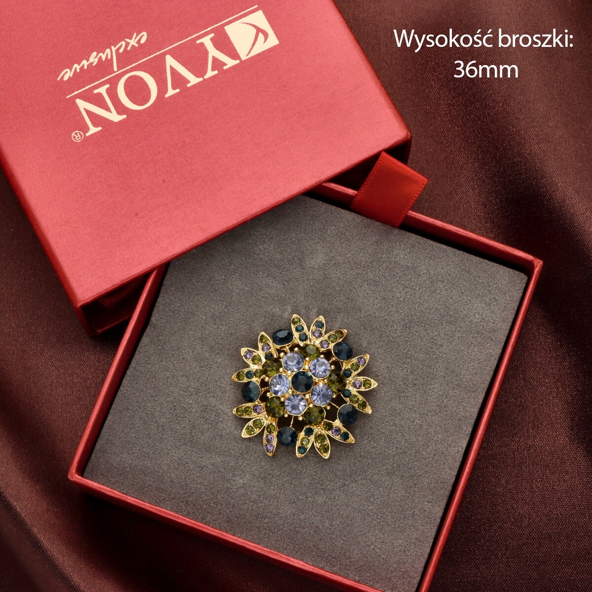 Elegancka broszka wykonana z wysokiej jakości szkła fasetowanego oraz metalu hypoalergicznego. Subtelny dodatek, który idealnie wpisuje się w jesienne stylizacje.