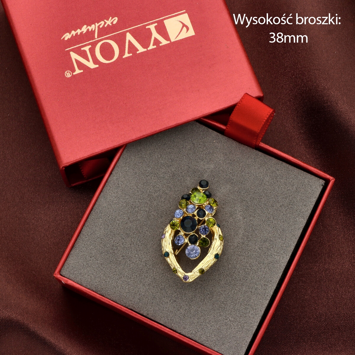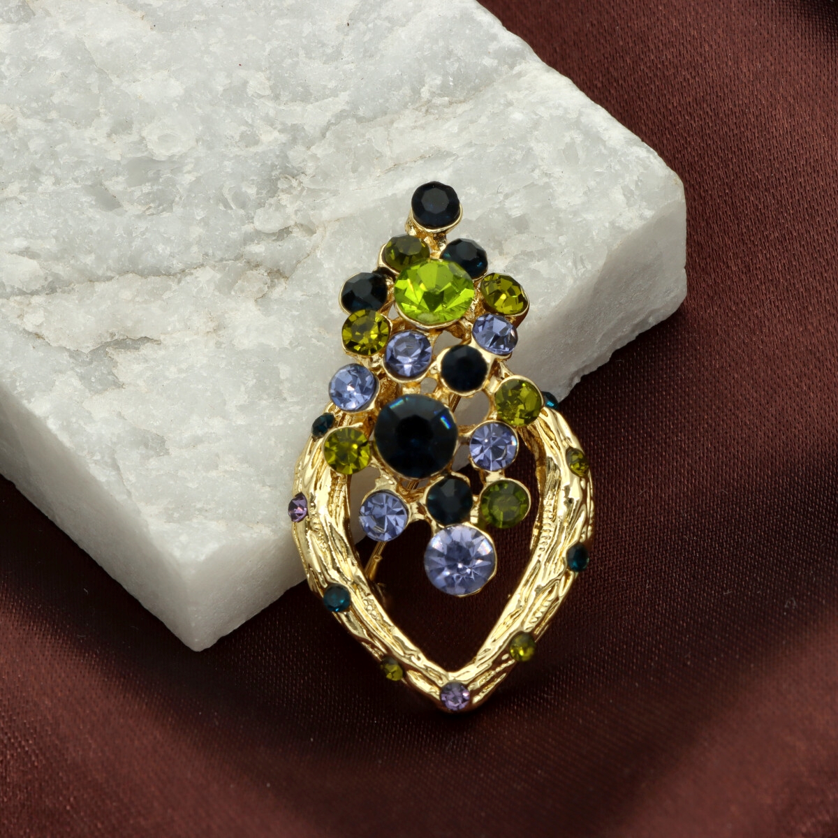 Elegancka broszka wykonana z wysokiej jakości szkła fasetowanego oraz metalu hypoalergicznego. Subtelny dodatek, który idealnie wpisuje się w jesienne stylizacje.