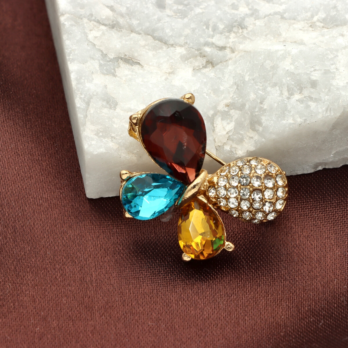 Elegancka broszka wykonana z wysokiej jakości szkła fasetowanego oraz metalu hypoalergicznego. Subtelny dodatek, który idealnie wpisuje się w jesienne stylizacje.