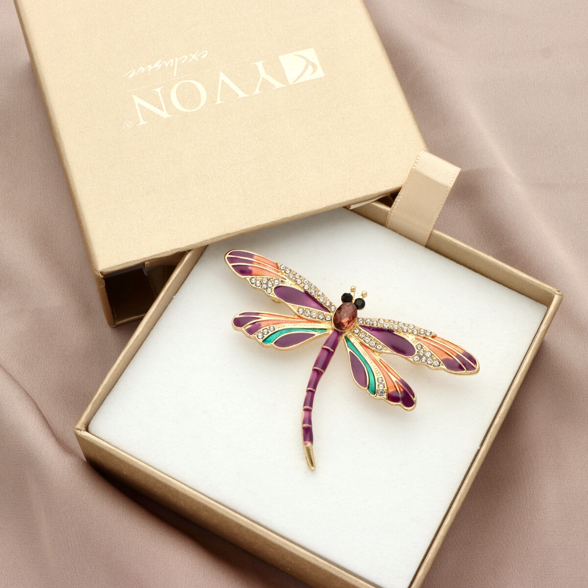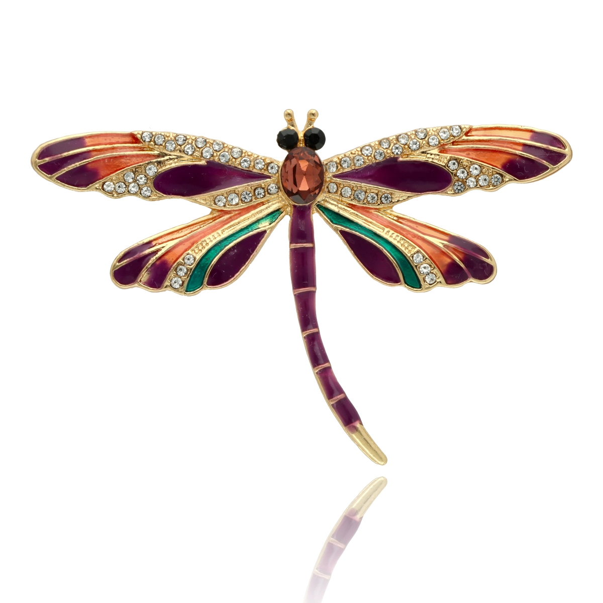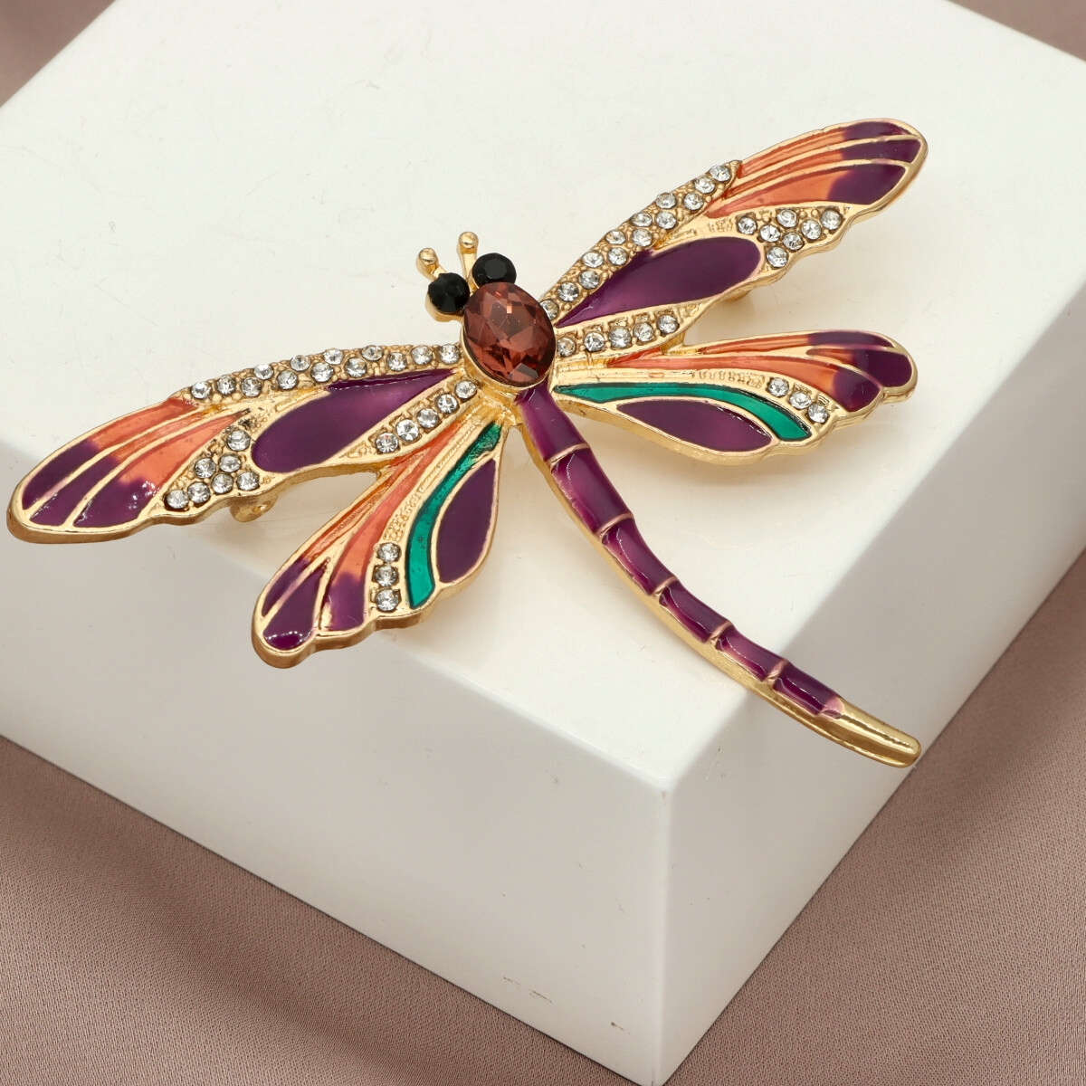 Elegancka broszka ważka wykonana ze szkła fasetowanego, emalii oraz metalu antyalergicznego. Subtelny dodatek, który idealnie wpisuje się w jesienne stylizacje. Każda broszka pakowana jest w prześliczne pudełeczko z wysuwaną szufladką, dzięki czemu świetnie sprawdzi się również jako gotowy prezent – bez potrzeby dodatkowego opakowywania.
