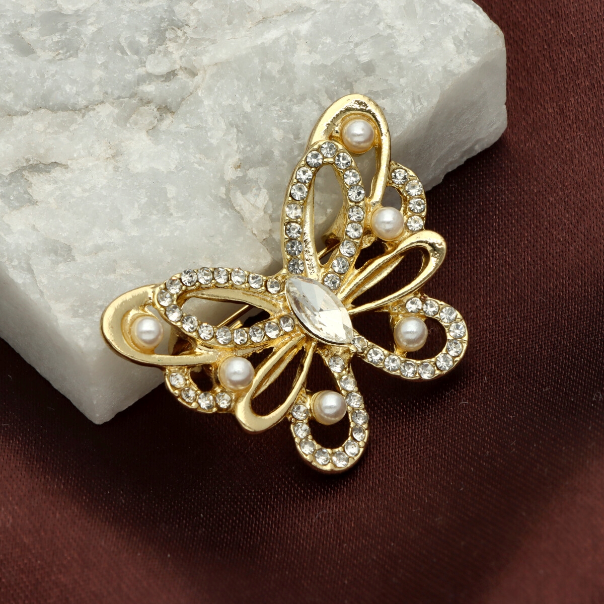 Elegancka broszka wykonana z wysokiej jakości szkła fasetowanego, cyrkonii oraz metalu hypoalergicznego. Subtelny dodatek, który idealnie wpisuje się w jesienne stylizacje.