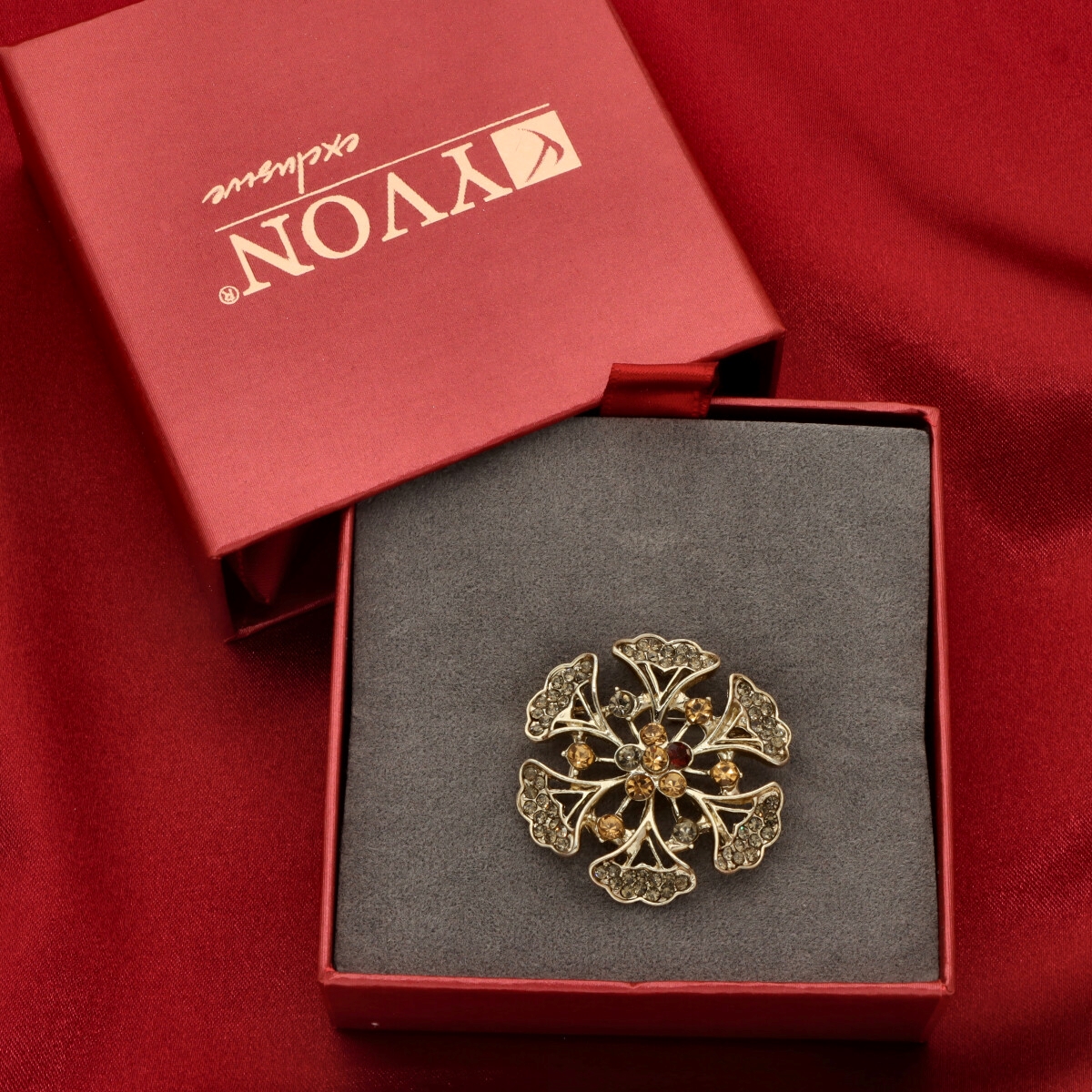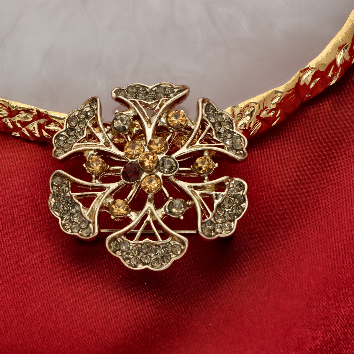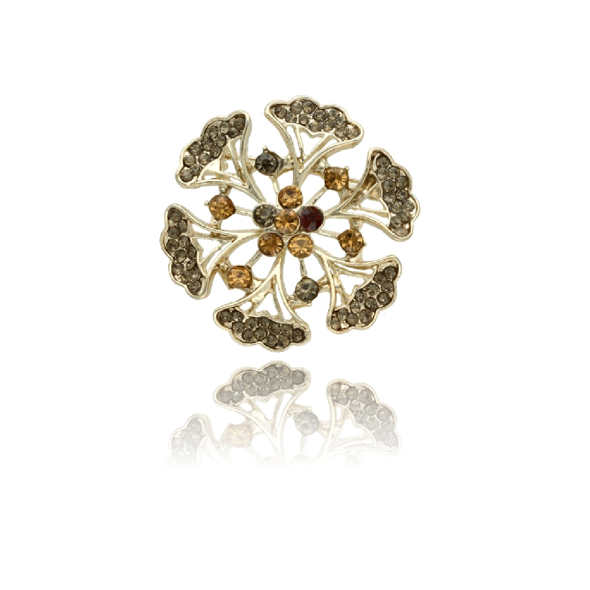 Elegancka broszka wykonana z wysokiej jakości szkła fasetowanego oraz metalu hypoalergicznego. Subtelny dodatek, który idealnie wpisuje się w jesienne stylizacje.