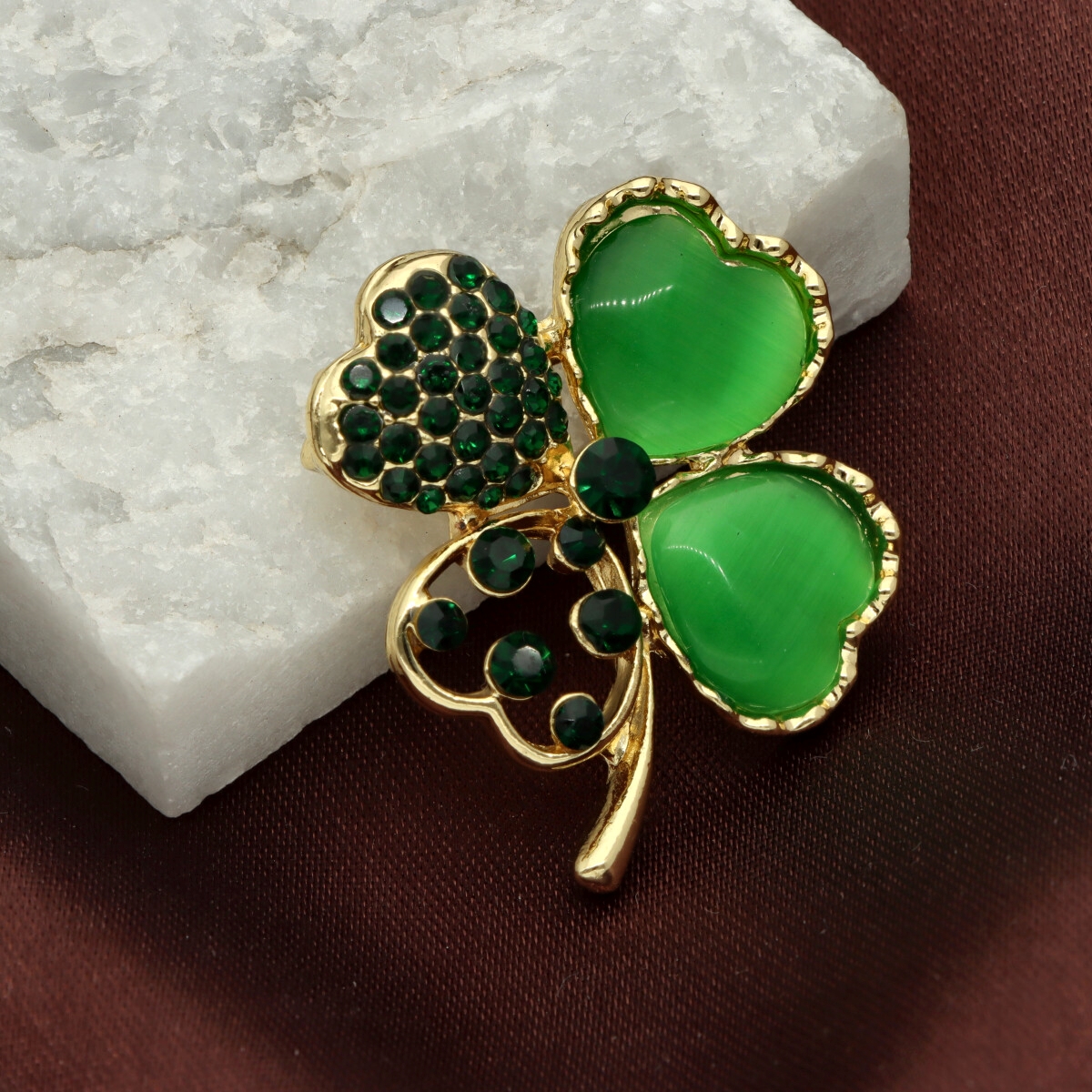 Elegancka broszka wykonana z wysokiej jakości szkła fasetowanego, żywicy oraz metalu hypoalergicznego. Subtelny dodatek, który idealnie wpisuje się w jesienne stylizacje.