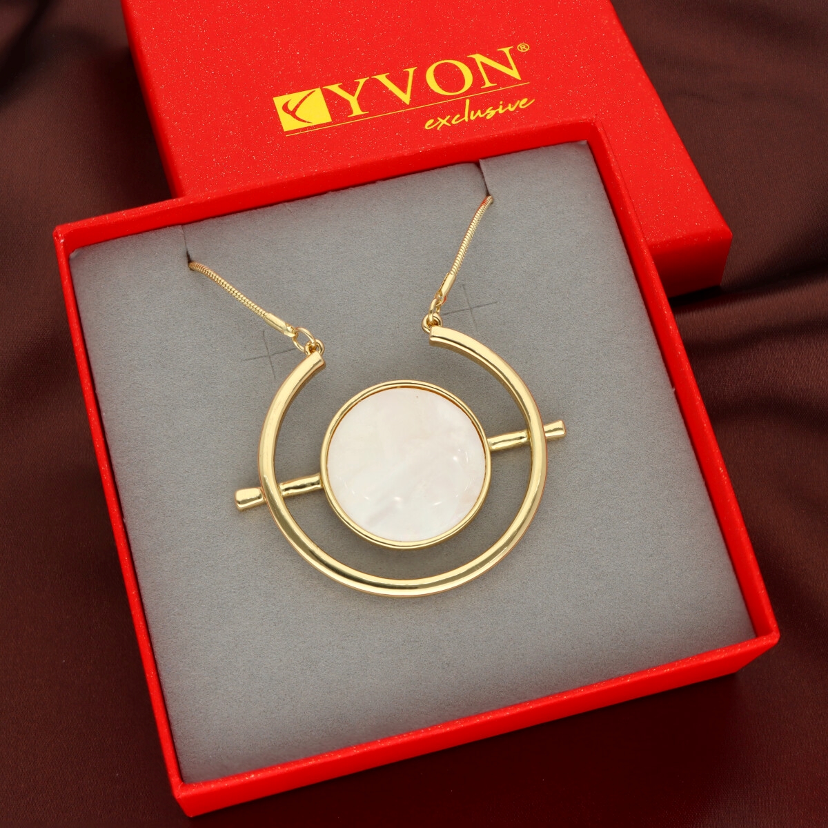 Elegancki, krótki naszyjnik wykonany z metalu antyalergicznego, ozdobiony efektowną zawieszką o długości ok. 5 cm. Zawieszka została wykonana z naturalnej muszli mlecznej, tworząc harmonijne, przyciągające uwagę połączenie.